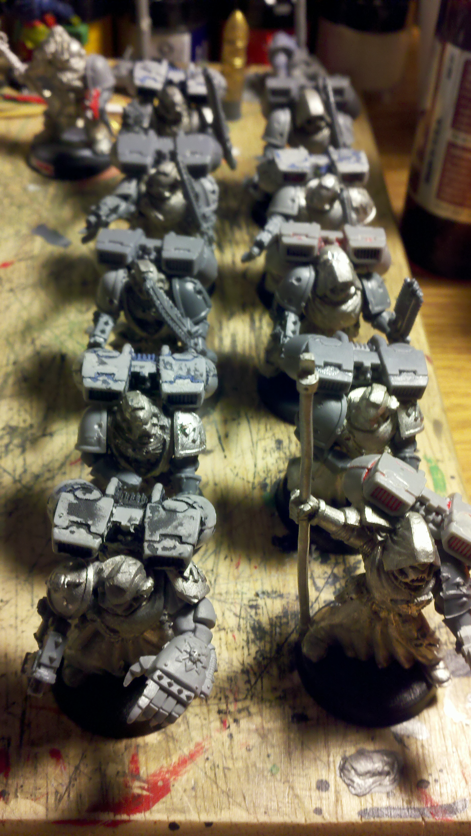 Pre-heresy, so black armor, bleach-bone robes. I have been trying to find some pictures of the Fallen Angels, but to no avail. So I am going to go with the Pre-Heresy photos I can find. My only concern is with the black armor looking bland, I guess I will use a dark-grey to highlight it a bit though. Tedious? Is there any easier method?