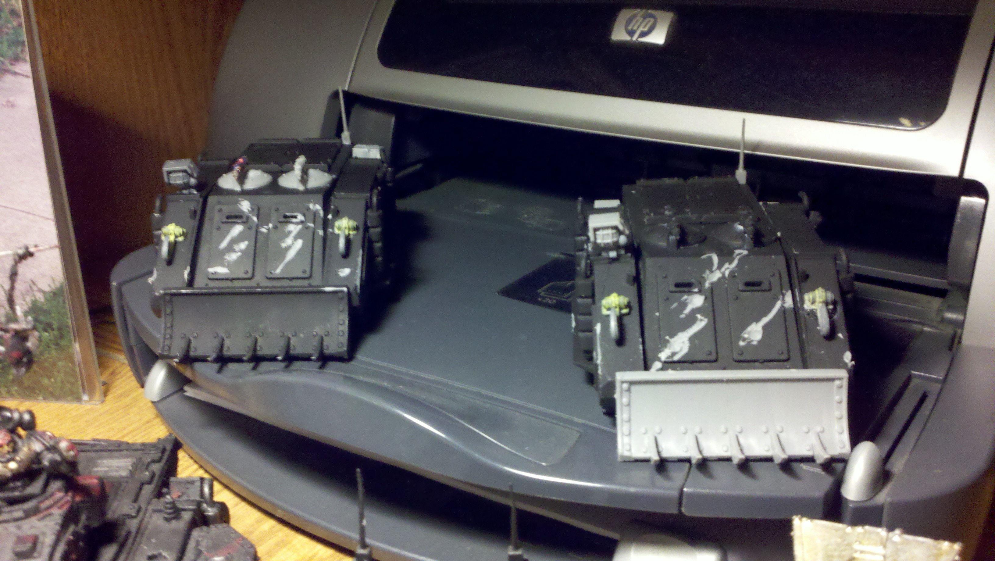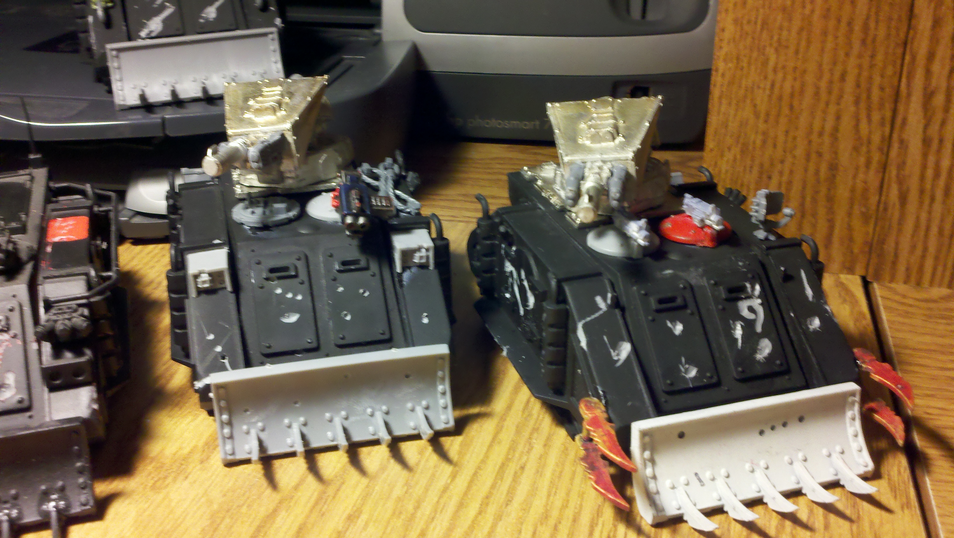 cool stuff, i love black da, even if they are scummy fallen  pre heresy da were all black with crimson chapter symbol and gold trimings on the higher ups. i qould read decent of angels and fallen angels from the hh series, they will give you some good idea's, they have given me tons lol. liking the old school rhinos too, have not painted one of those since early 90's