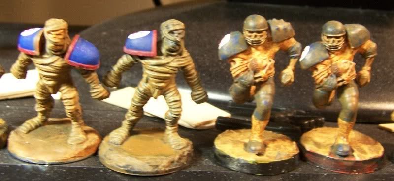 That's the re-based Warhammer Fantasy Treeman I've been using with my Wood Elf Team, the Wood Wardens, a game ball I sculpted to replace a misisng one, and my Treeman down marker.
