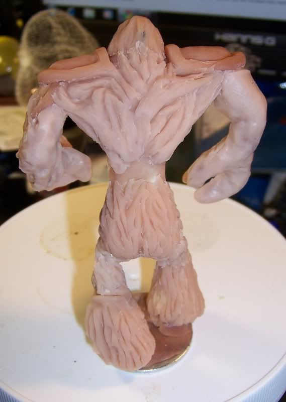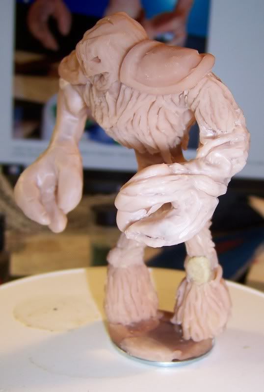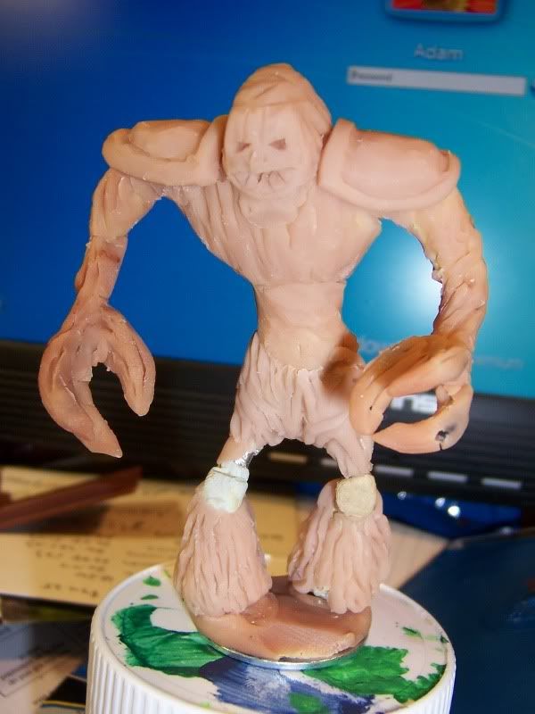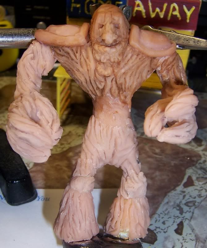 Started bulking out the model and added the fingers, torso, and arms. I decided I'd take pictures next day before working on it.