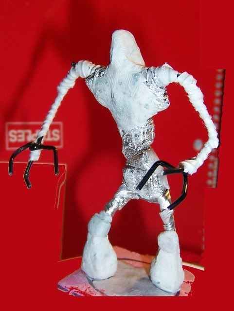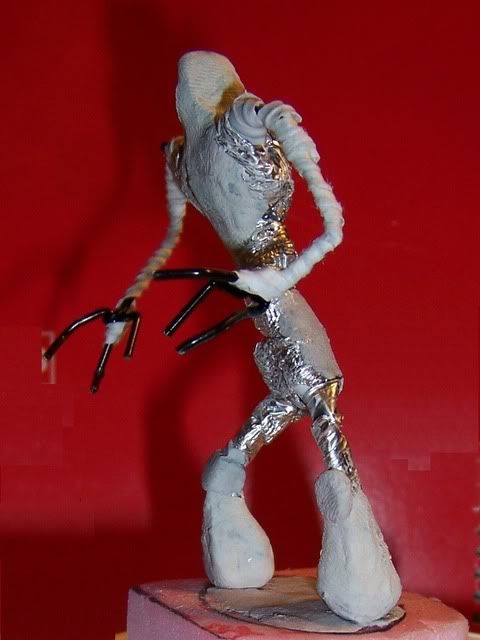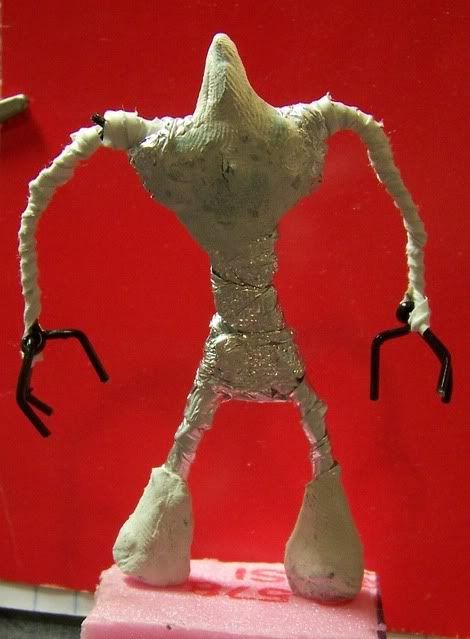 Put together an armature with whatever I could find in under a mintue. Some paper clips, Alluminum foil, and some cheap epoxy putty (not really suitable for sculpting)