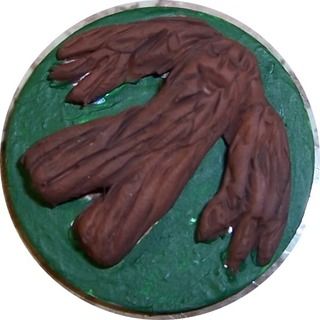 It's made of Super Sculpey and a 1.25" washer. A few quick layers of green, brown, and a light brown drybrush later, and I have a servicable and unique game token.