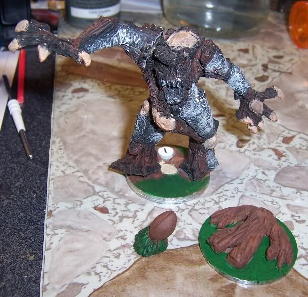 I've found, while playing Blood Bowl, that the Treeman model is just too big to lay down without it causing all sorts of havoc on nearby models, so I sculpted a Treeman Down Marker.
