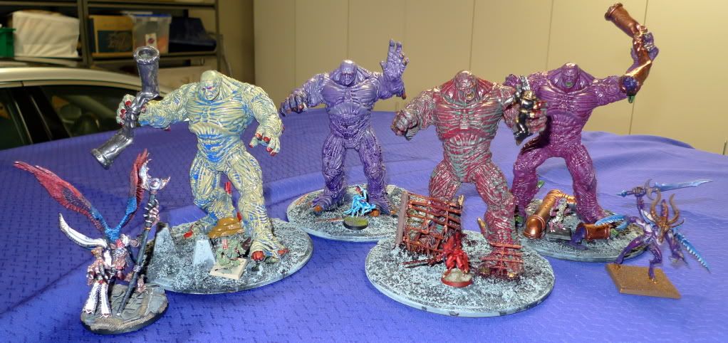 These monsters are creatures of pure destruction and carnage. They exist purely to spread more chaos throughout the multi-verse. Little is known about them or their origins, except that there is an avatar for each of the 4 Gods of Chaos. Why they were created, no one knows. Librarians have speculated that the Chaos Gods are highly competitive and paranoid in nature. When one abomination was created, the other 3 gods must have consequently created their own abominations lest they find themselves at a disadvantage in the never-ending war between the chaos gods. With the exception of the Daemon Lords, the Abominations thwarf all other daemons, greater or lesser, in size and power.