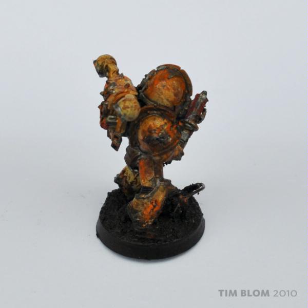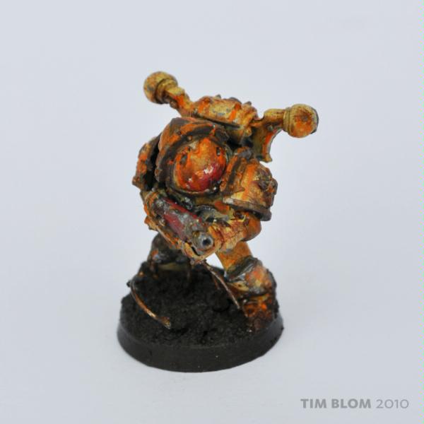 Fast forward to early 2010. I'm cleaning out my room and find a shoebox of old, dusty Chaos marines. Basecoated black with gold dripped on by a senile chimpansee.