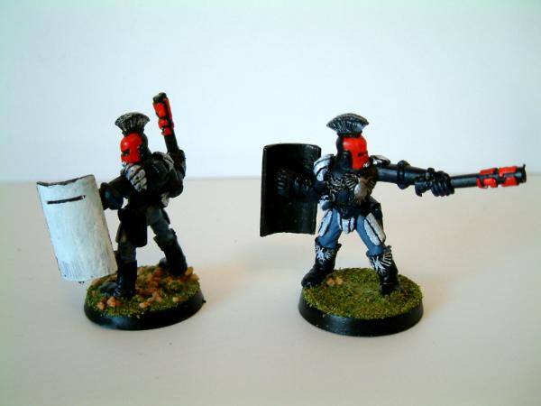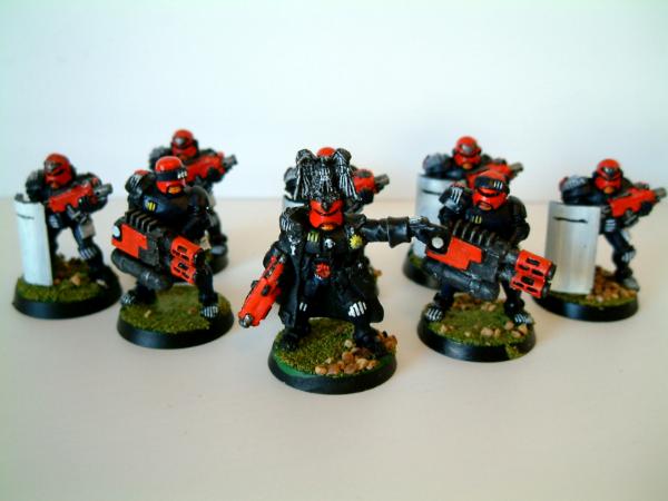 Orinoco wrote:Good work. Can you tell us about putting together your repressor? I've heard horrors about the kit and was wondering if you had any insight as to it's construction. I didn't have much trouble actually. I think the problem is that the repressor kit is mainly two huge pieces - you get the whole riot shield as one piece and the whole top/back section as one piece, so if one of those is miscast or warped then you're going to have a nightmare. I had one warped riot shield corner which wasn't too much trouble, but other than and the usual GS filling, my kits were fine! warboss wrote:looks good! i thought you were just lampooning a certain someone with your "arbites are the bestest eVAR army and must haz their own codex" post but i guess you really do like them.  Oh I was definitely taking the piss - I wouldn't really expect there to be any mention of Arbites in the new Inquisition codices....