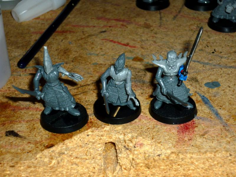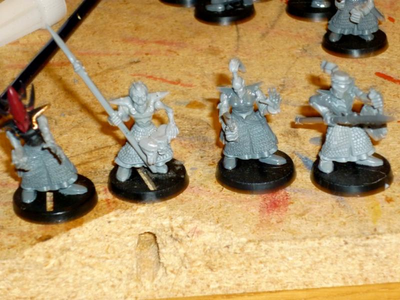 I would use normal eldar guardian legs. With dark elf heads and they need guns. They are too fantasy and not enough, well really not at all, sci fi.