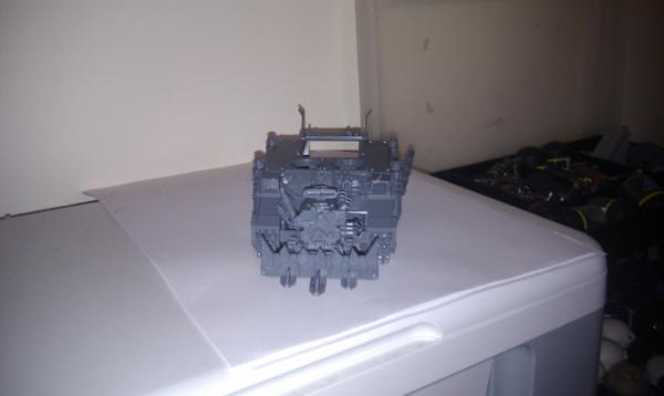Well, it's now primed. I won't bother posting a picture of it in primer as it'll just look like an indistinct black blur. I have however started painting the engine. I figure it's going to be the engine and the interior that are going to be the hardest, So I'm going to get them done, or mainly done before I paint the hull.
