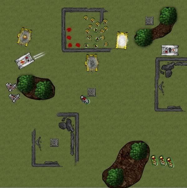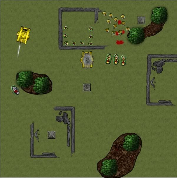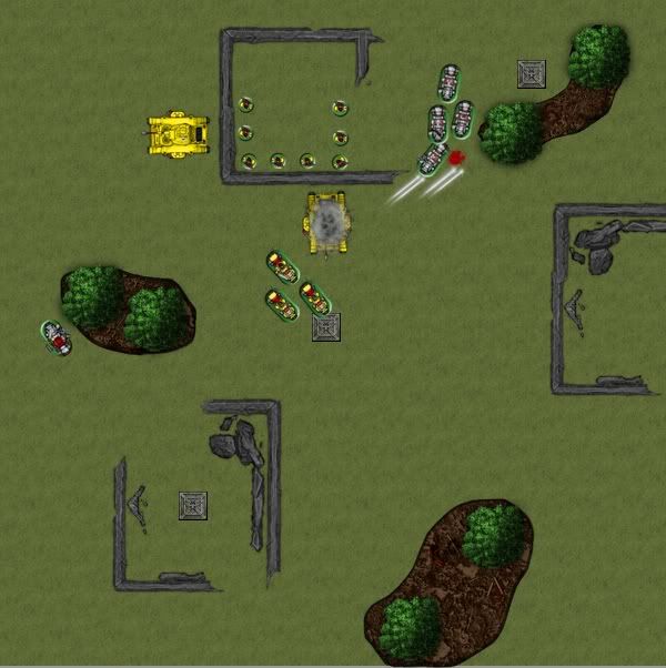 I got a techmarine and the bike squad into play. The techmarine couldnt really do much at this point to I hid him behind the woods. The bike squad moved up and opened fire on the side armour of the predator, blowing it up but loosing a biker to an over heat =[