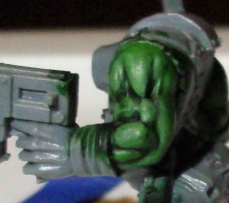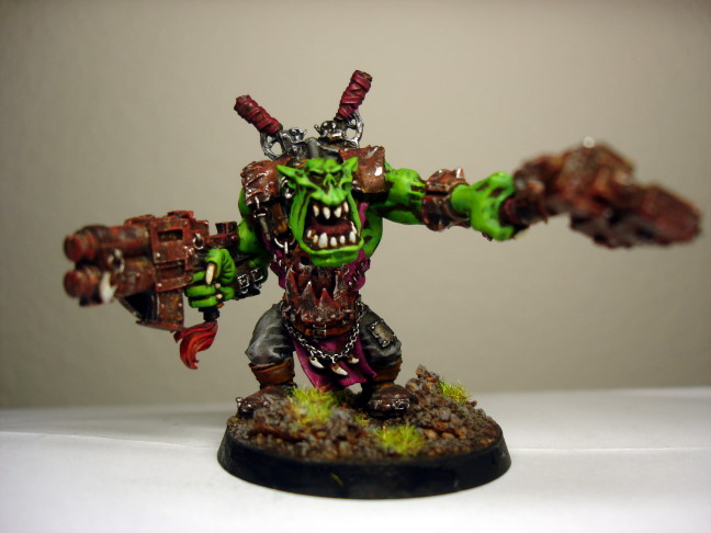 Well, may I ask your basic process for orks? Also, are there any washes on your warboss? Somewhat looks like there might be one on the pants. Also, loving the rest effect on the shoota, by the way.