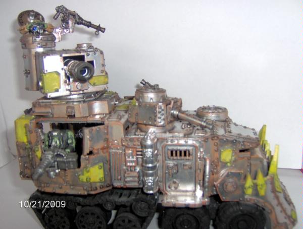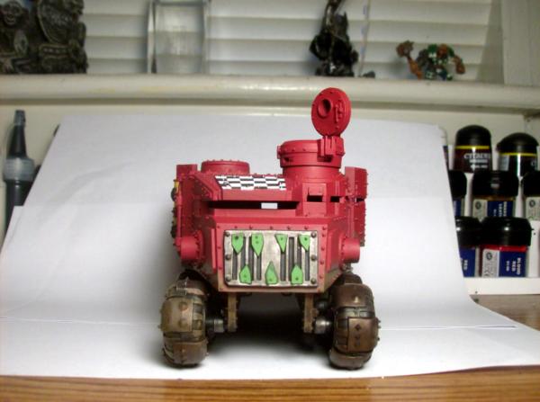The checks on the front look great, good job on them! Maybe some more similar details elsewhere would Orky it up more. Random checked stripes, or some black flames or something?