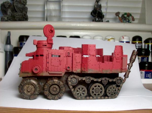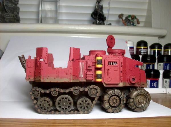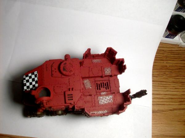 Yeah, it's far too clean  I'd use a watered down Devlan Mud wash (to shade red, this does a better job than black in my opinion) and add lots of paint scrapes and rust