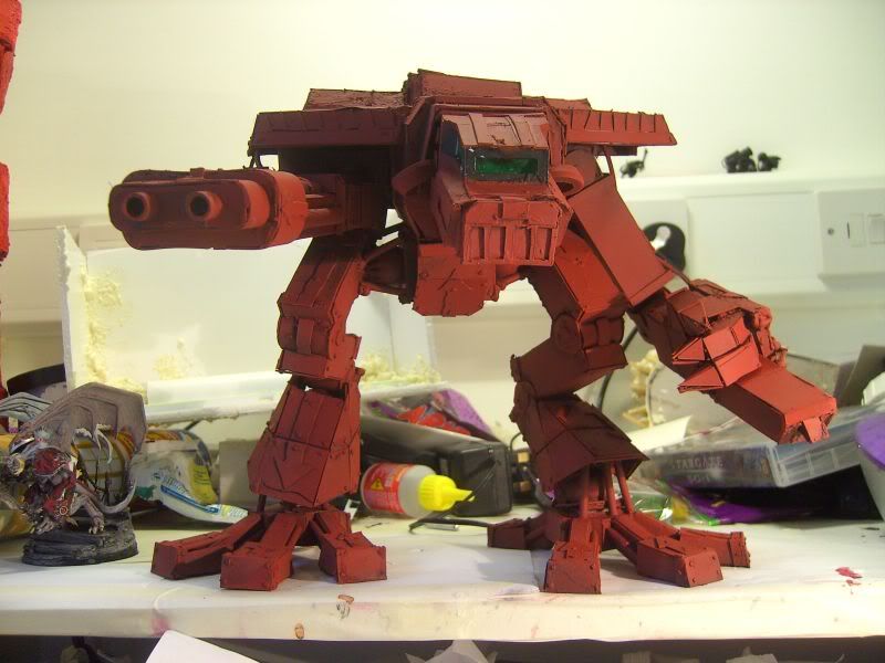 It's simply because i wanted a low posed menacing feel to the thing, it's only about 10" tall, instead of the 12" stalker that usually get fielded... though worry not, i am going to scratch build a mars pattern with the full double barralled death look.