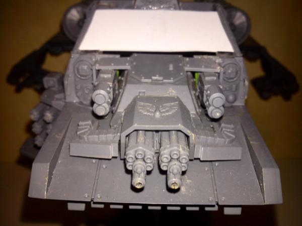 The front with the twin-linked multi-melta and twinlinked assault cannon