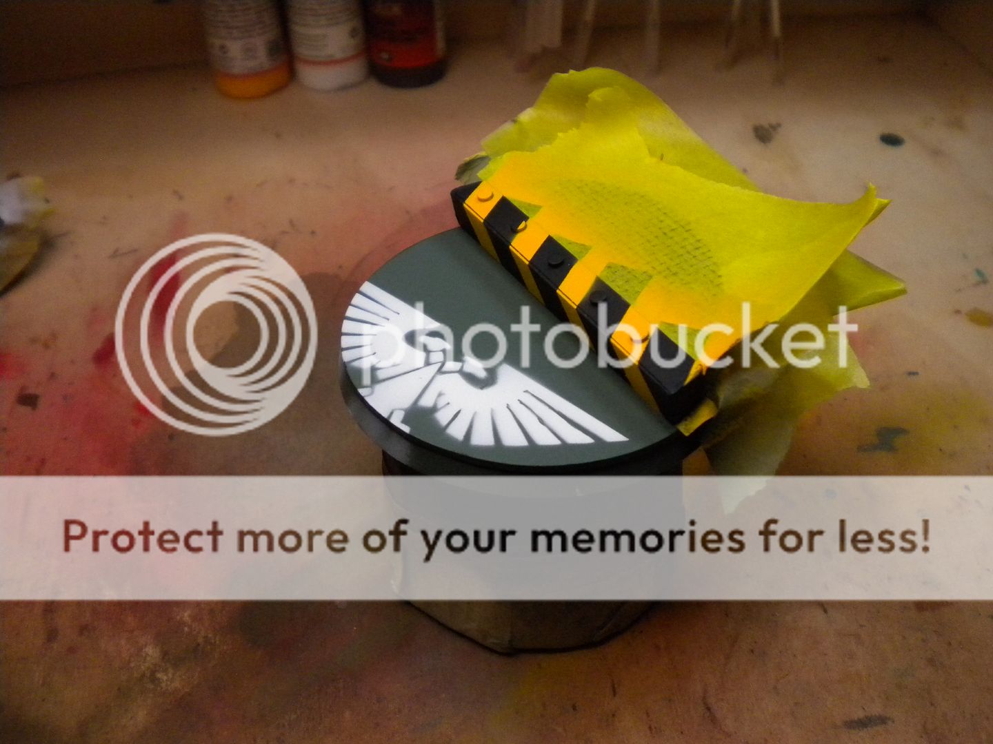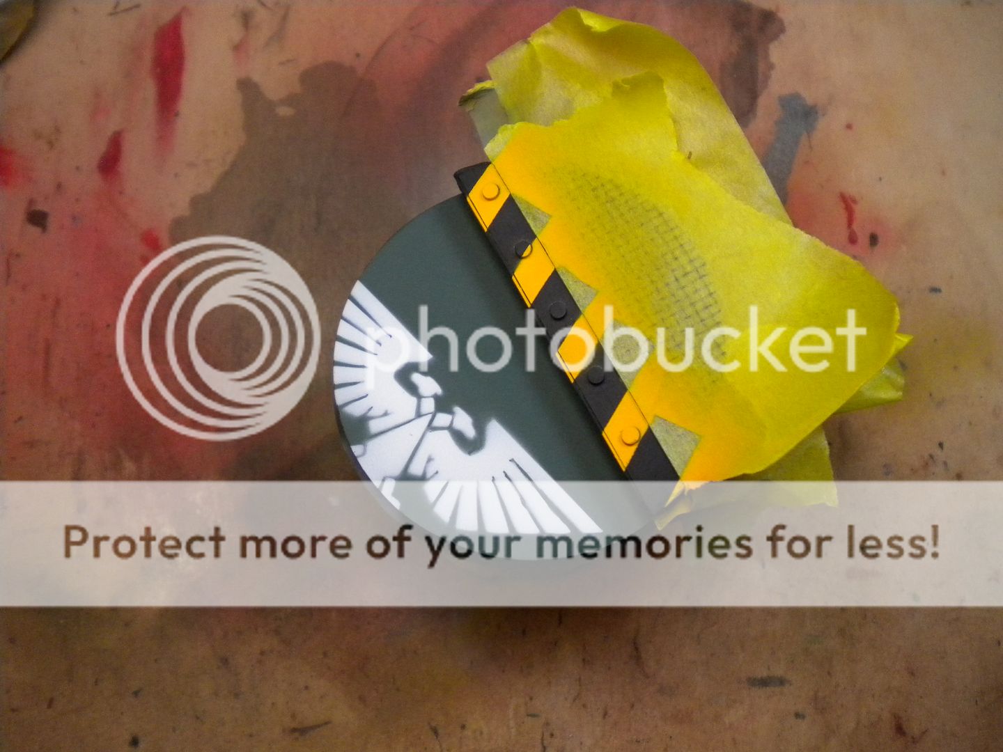 how did you do the painted eagle on the base? did you airbrush over a cutout template? either way, its looks very nice so far.