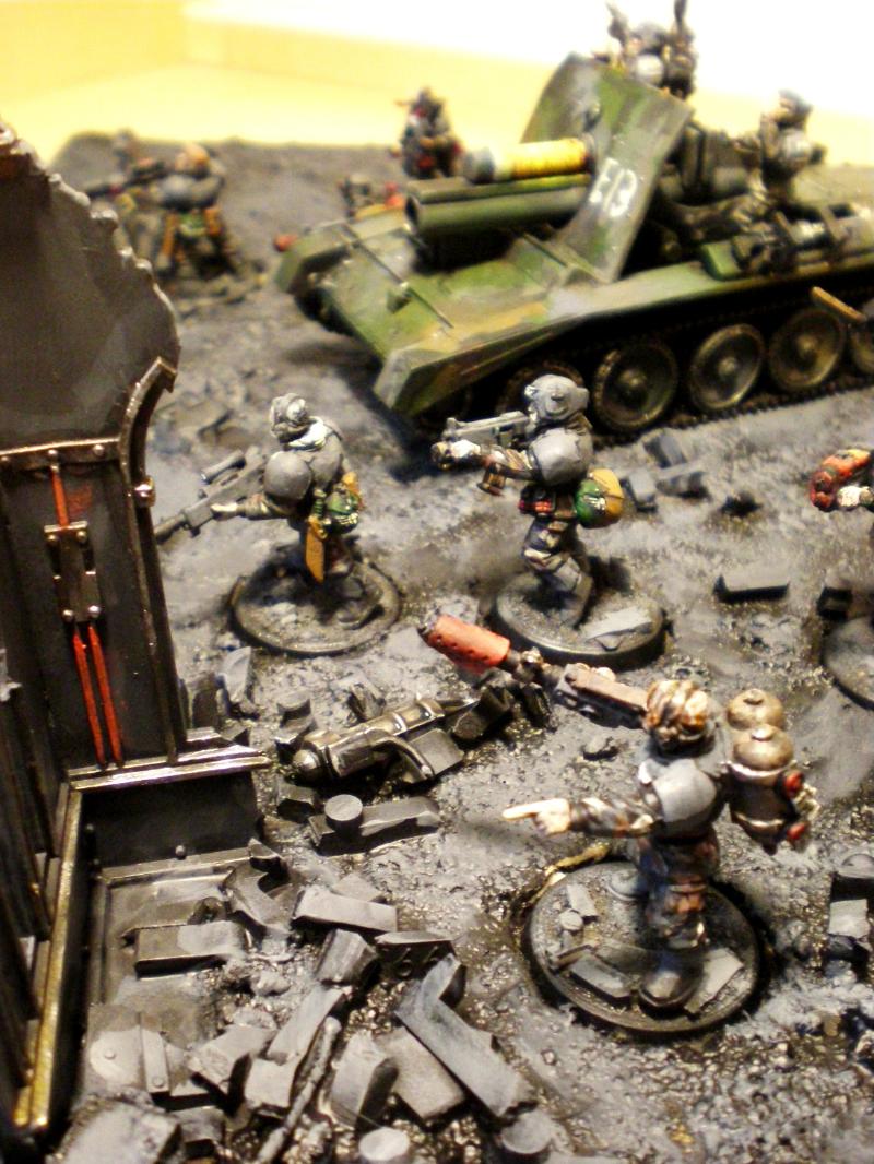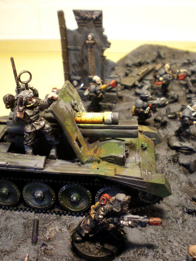 As a Heavy Infantry regiment, Rohstein's 57th HIR uses lot's of plasma weaponry. These weapons are mainly produced by Anband II forge world. Anband II also produces only for use of Rohstein's 57th HIR heavy plasma cannon carriers which are kind of self-propelled plasma cannons [model above]. It is proved to be extremely effective against flesh and can even bring down Tyranid bio-titans.