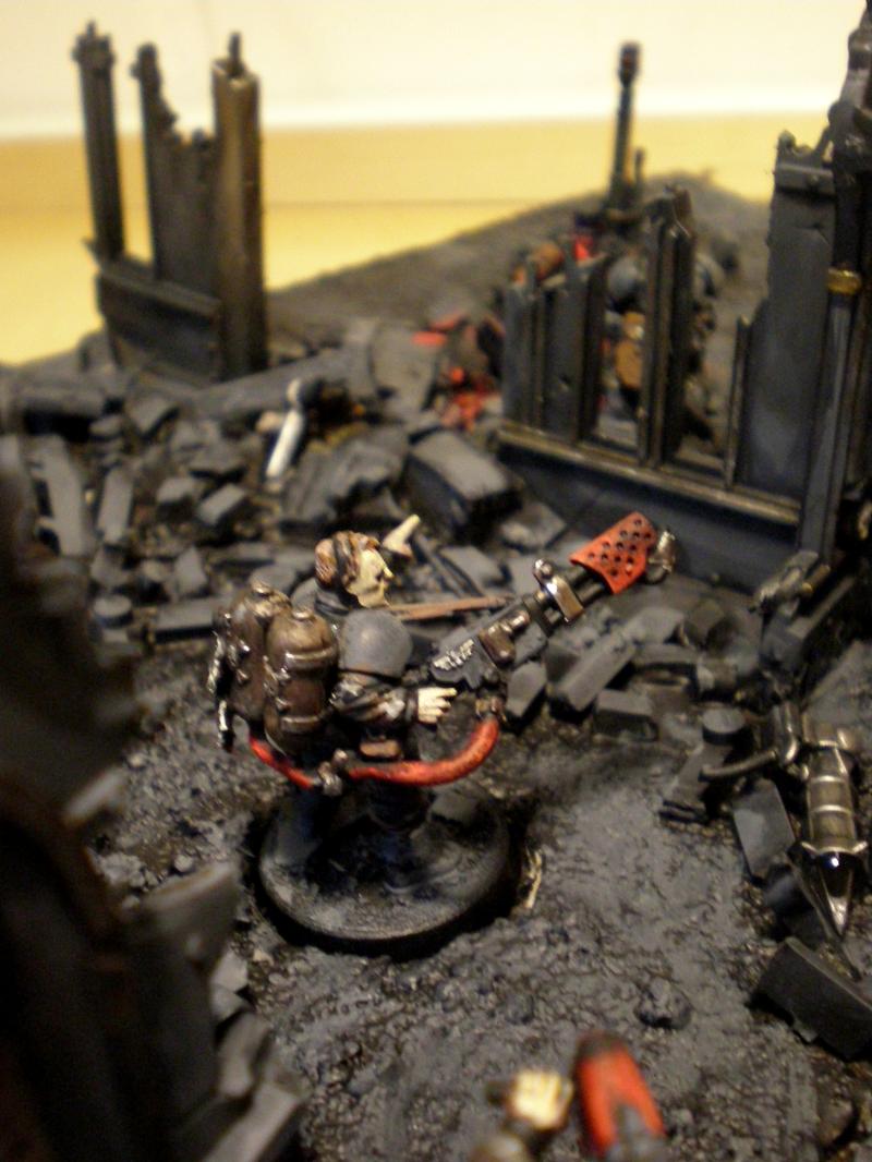 Space Marine with flamer and a guy who carries inquisitor's own bolter