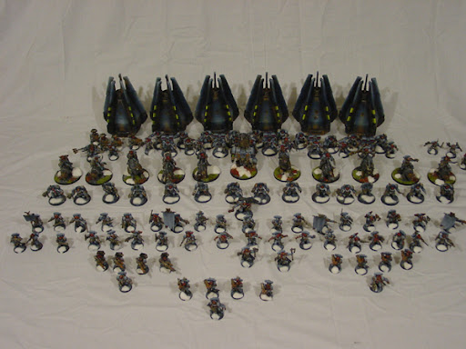 Man that is some impressive air brushing across the board. The drop pads are slowed good. The fades on the shoulders look so clean. I checked your blog out too, do you guys only paint armies?