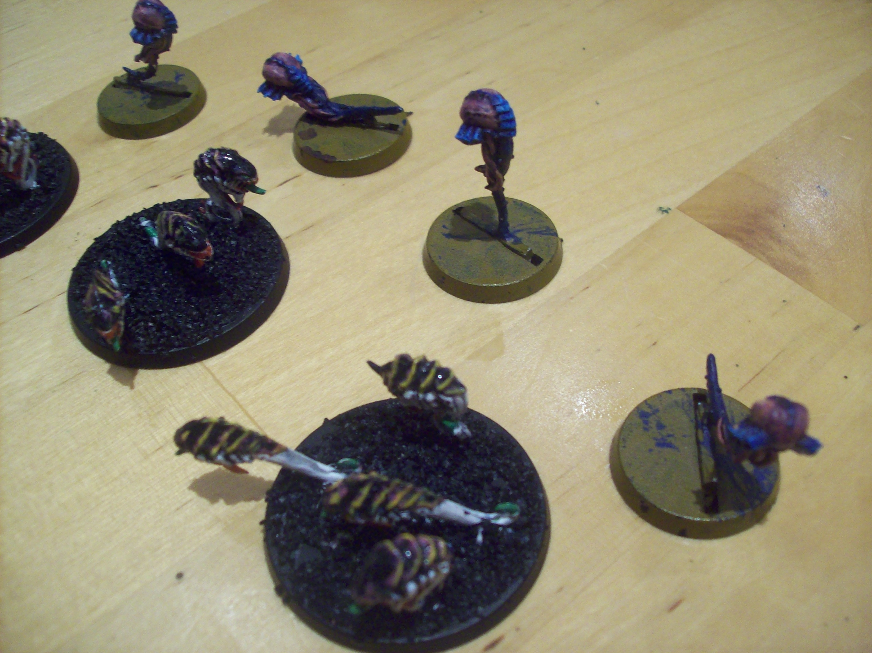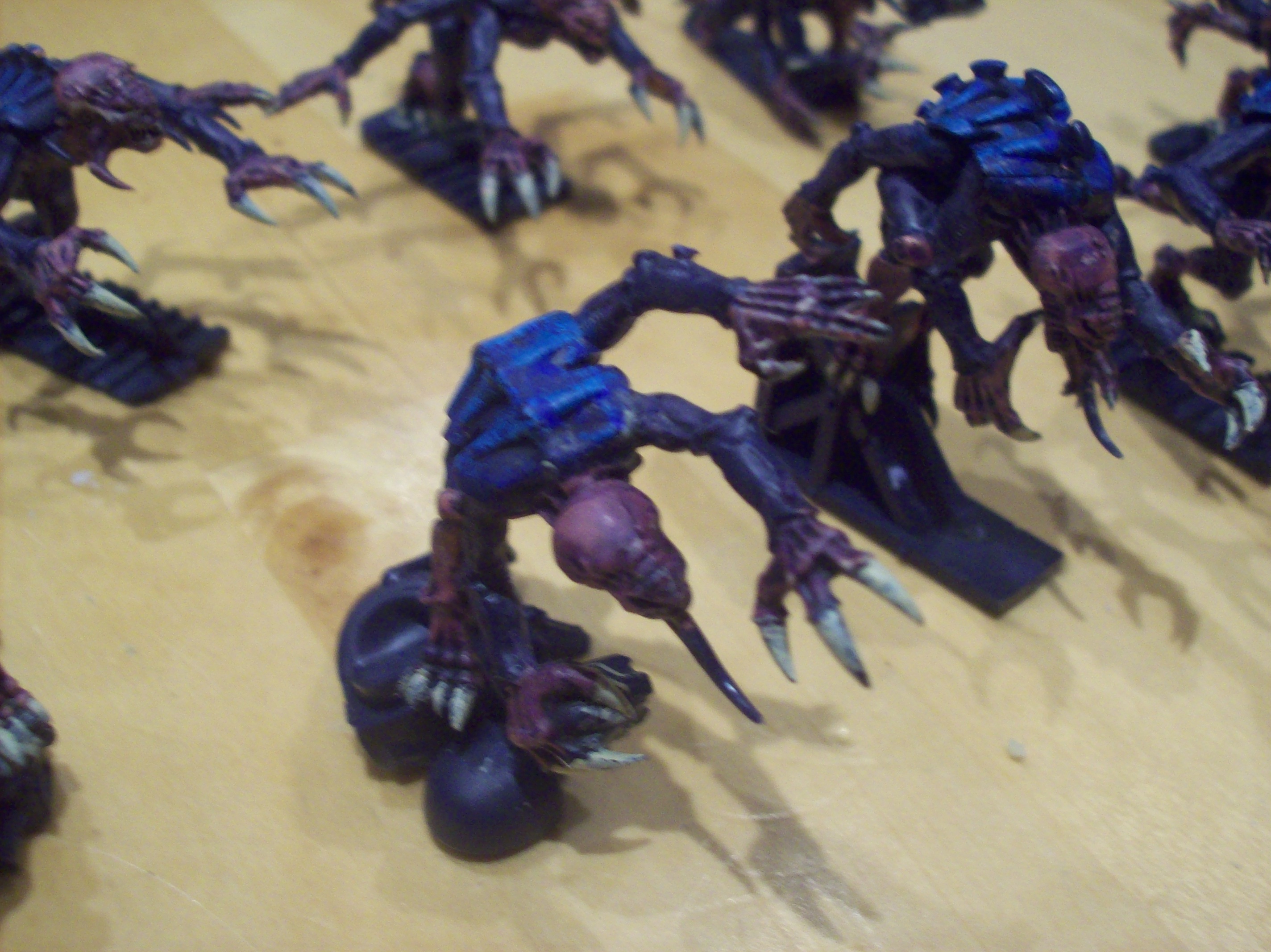 The genestealers and spore mines were done in a different way, paint dwarf flesh, highlight bleached bone for flesh, regal blue drybrushed with enchanted blue, with a purple wash on the flesh (except for the Ymgarls and the broodlord)!