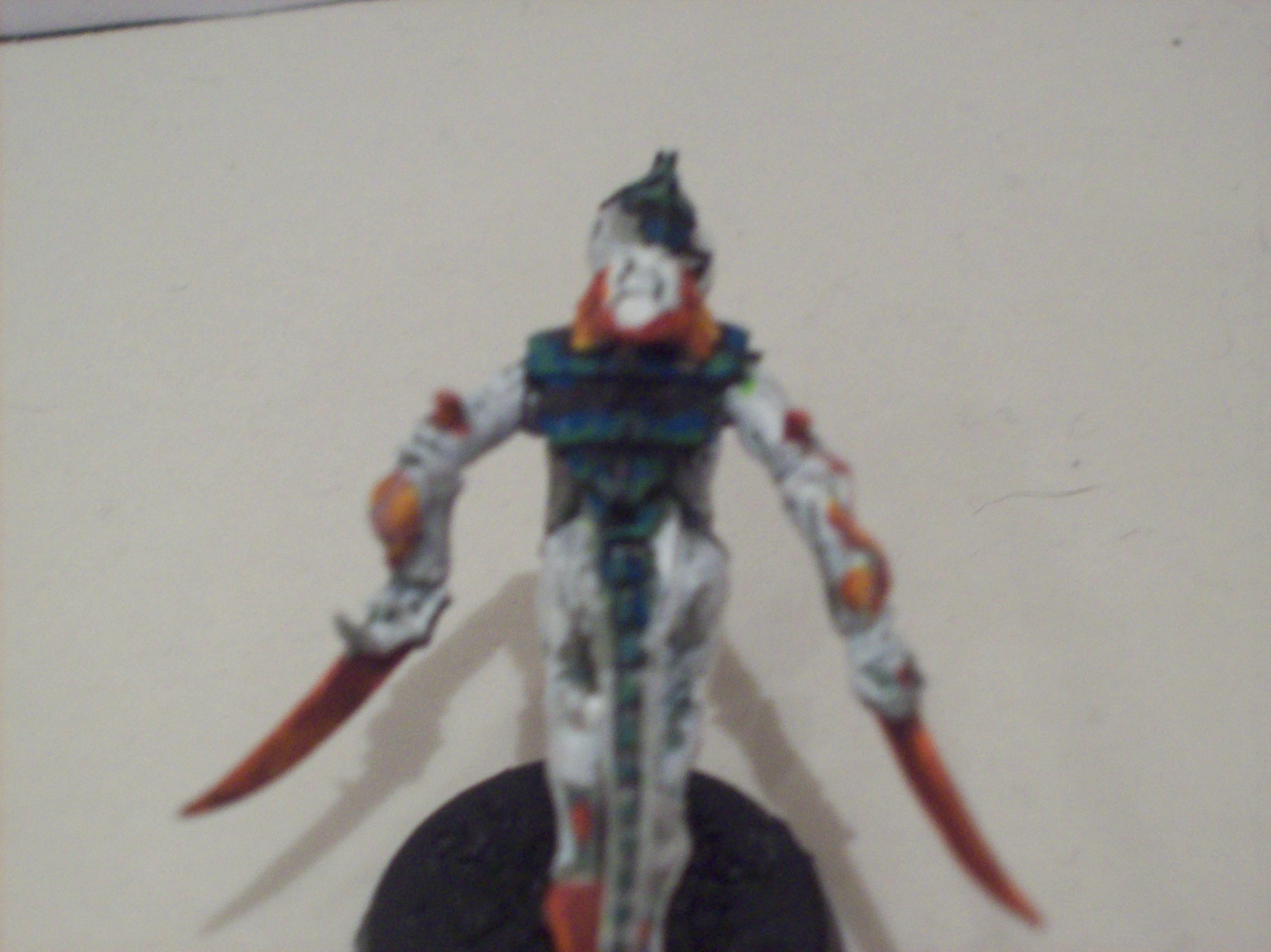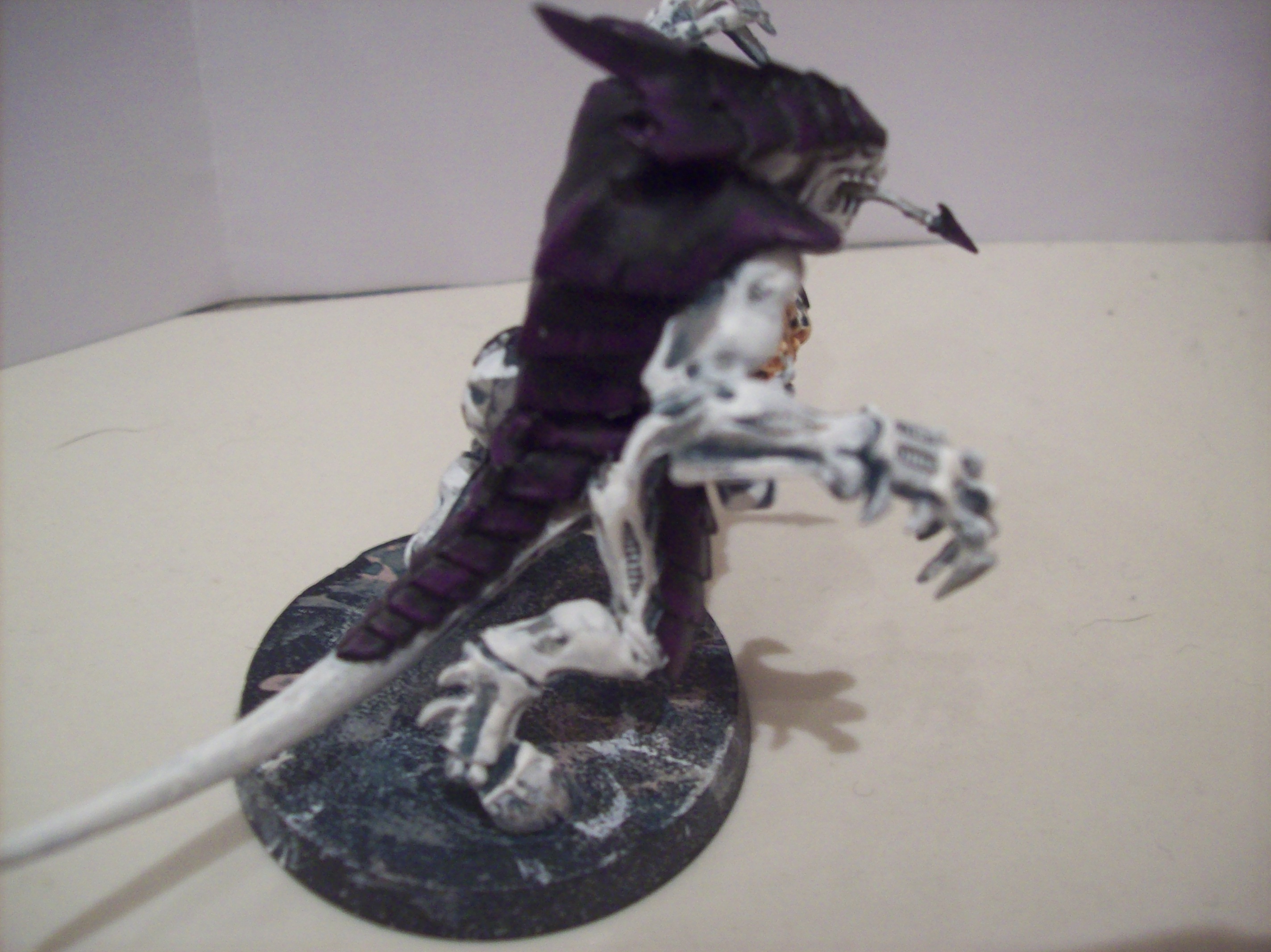 I like the purple/white scheme. Personally though I don't feel like those photo's are really doing any justice to your work. Might try putting a light 36 inches above the models and using auto focus. Also helps to set the camera on a flat surface while taking the pics.