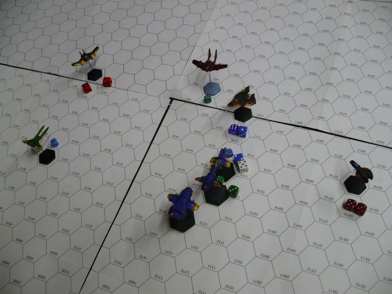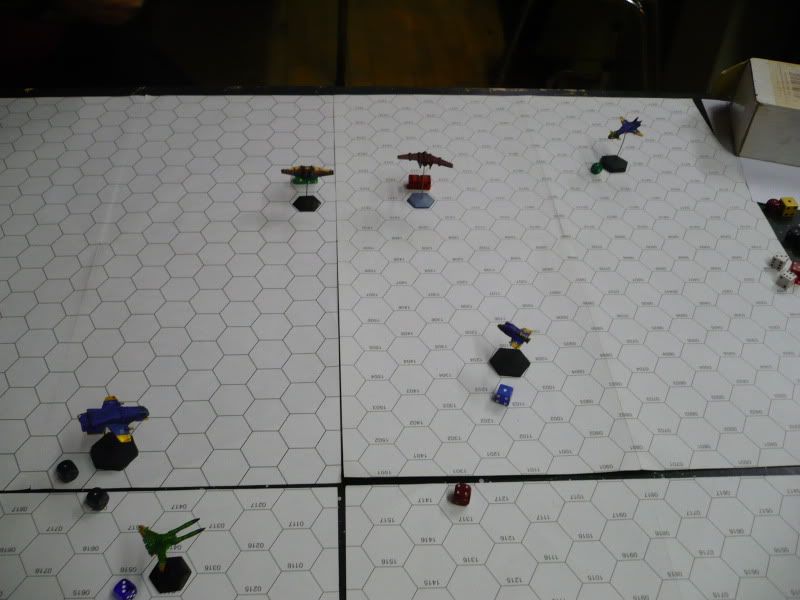 The Lyrans are flying at a velocity of 4 in close formation when they encounter the Draconis raiders: