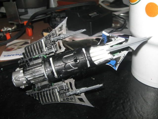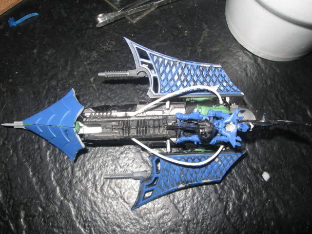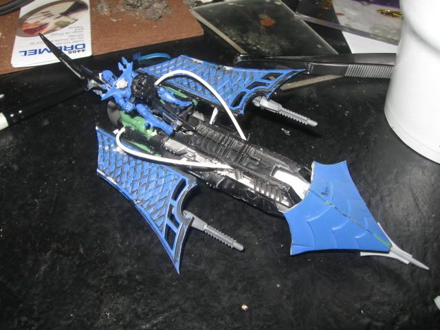 DE codex) but I was more focused on creating something usable out of a Raider, that matched the function of the Venom. I'm still not 100% done, I don't have the head for the pilot yet(it is going to be one of the fishbowl helmets from the jetbike sprue, I just left over at my friends house) and I have to find something to fit in the gap in the front (the pilot was originally going to sit there, before I changed the look)