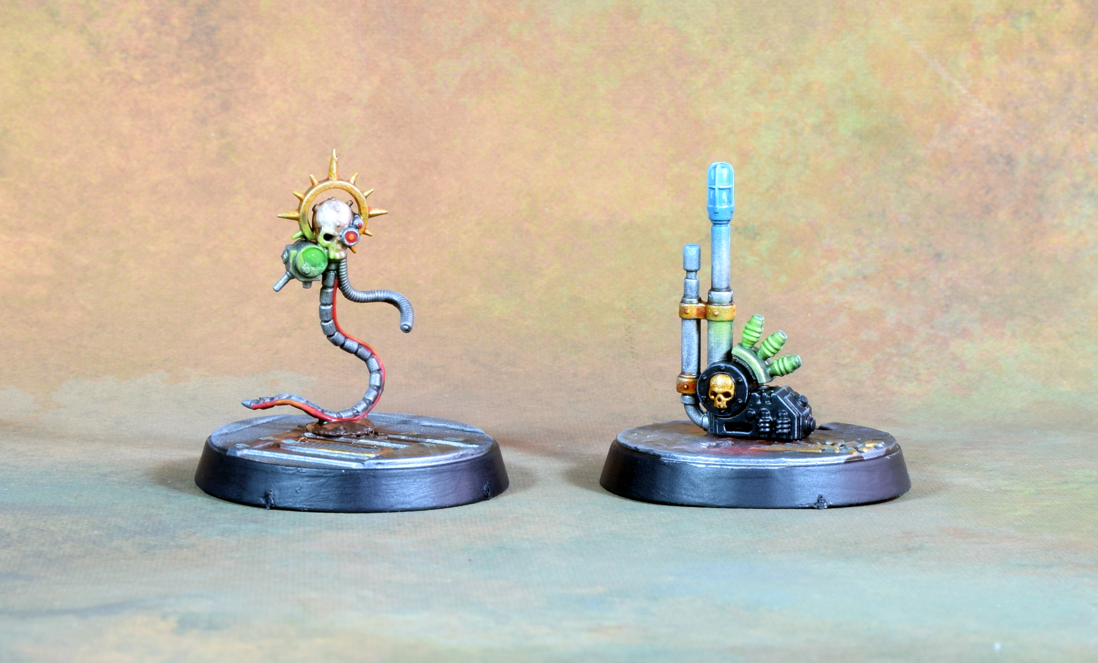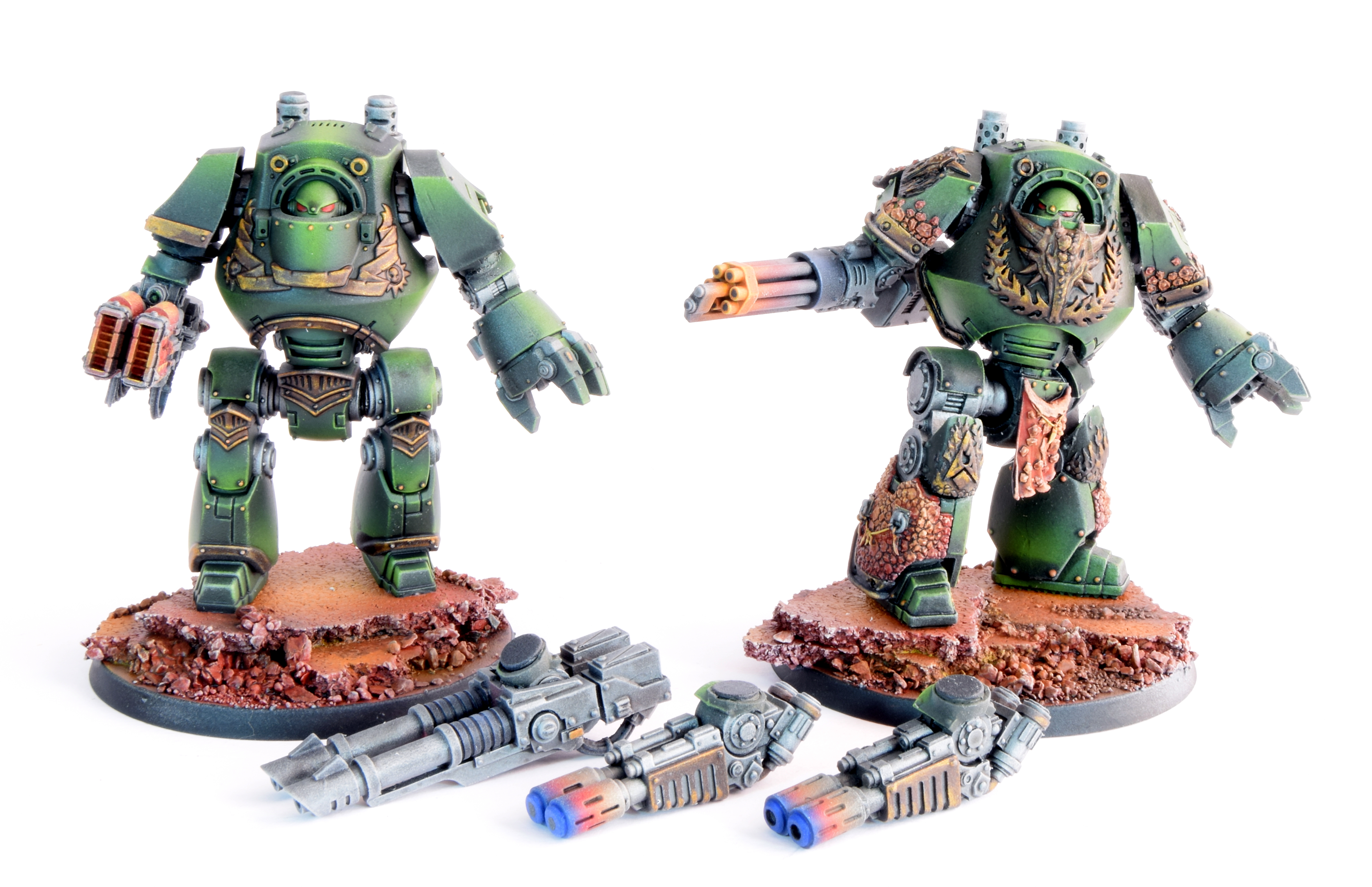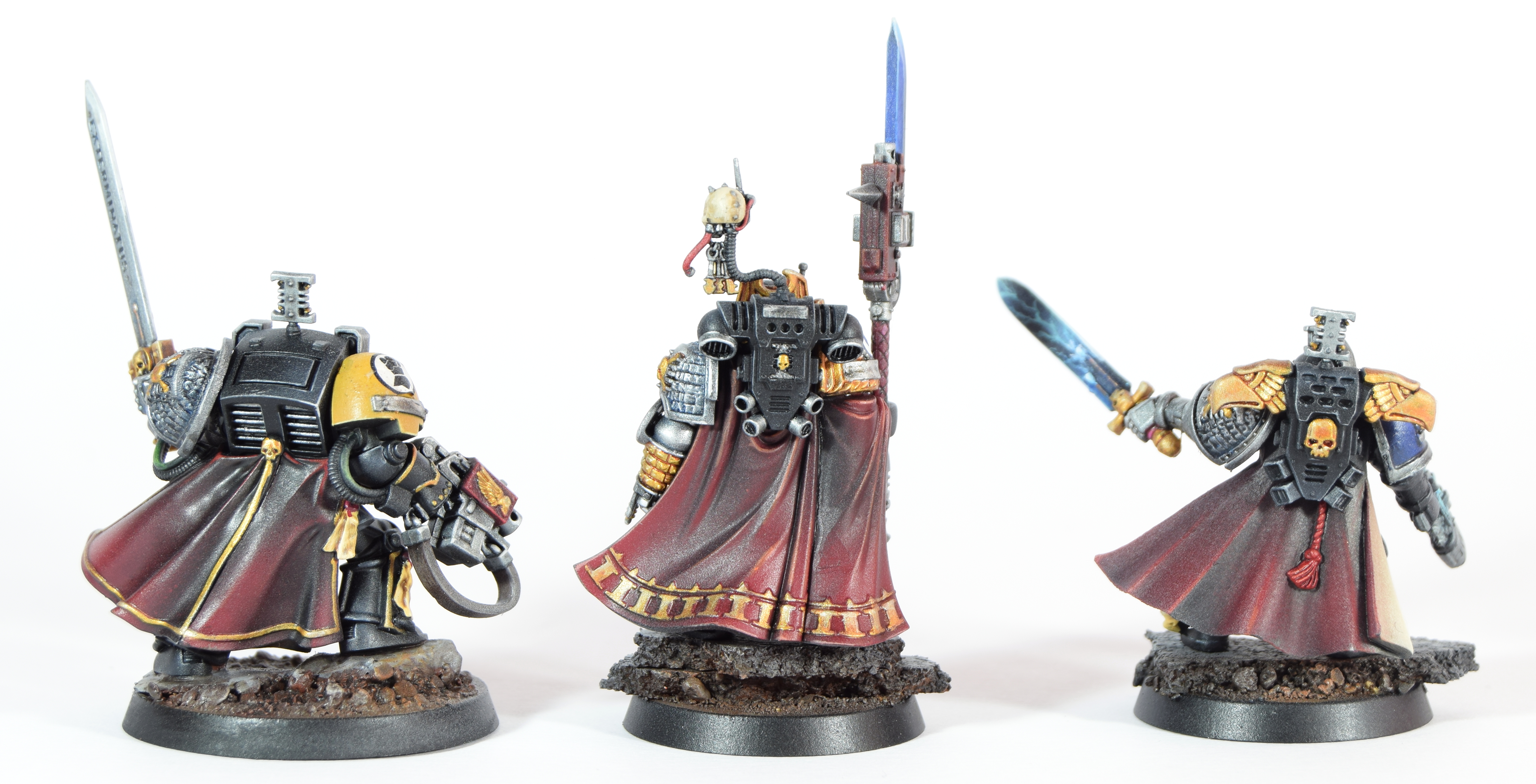 They where painted for GW Oxford so I wanted to do the gold in a way anyone could try rather than with my airbrush. its GW's Retributor spray with a Reikland Fleshshade wash. then sprayed again from a 45 degree angle, washed again, spreyed from the top and washed again. water the wash though.