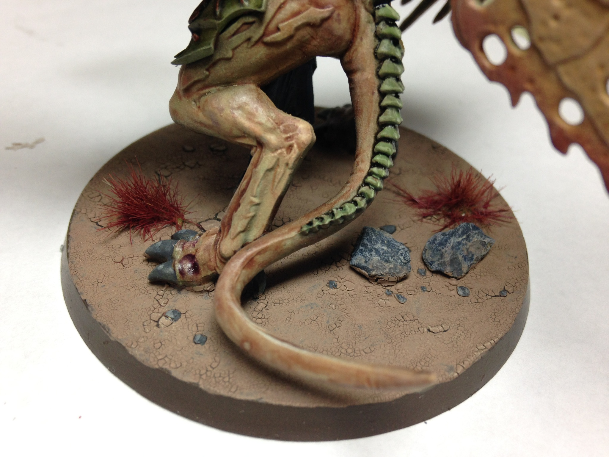 Dry brushed the base with ushtabi bone and painted some pebbles. Not sure if it comes across as small stones or fly droppings. The photos look a bit washed out.