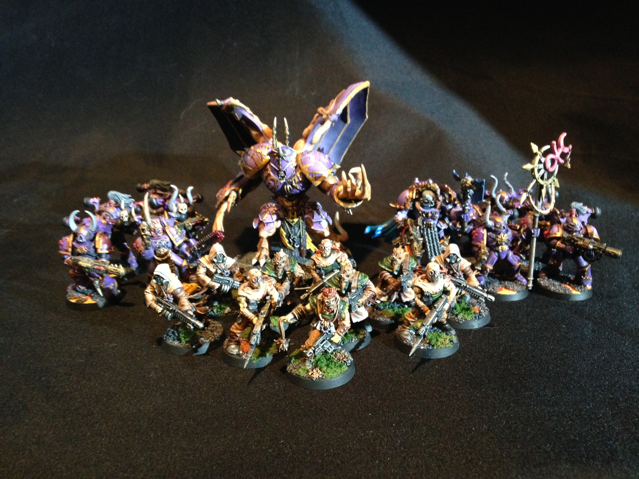 Thanks all for the helpful hints, I may go back and do some drybrushing on the rest of the DG. Here is a an allied force I may run with Mortarion and his boys. It’s small force of CSM, going to use the casters to warp time Morty into CC first turn, then follow up with the rest of the army.