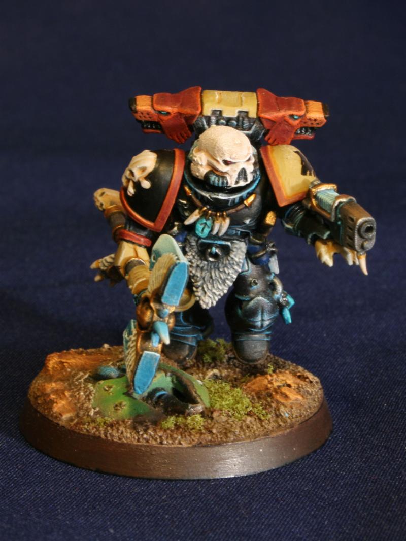 Thats a totally normal head from the CSM sprue only it has the rivets filed off. You get 4 or 5 of them in 1 box set.....search ebay for "Chaos Space marine heads"