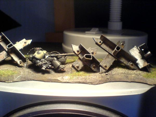 I'm liking the terrain, from what I can see. The templar's pose is great, except for the sword resting on his toe thing. The wounded model is a nice touch, though, generally speaking.