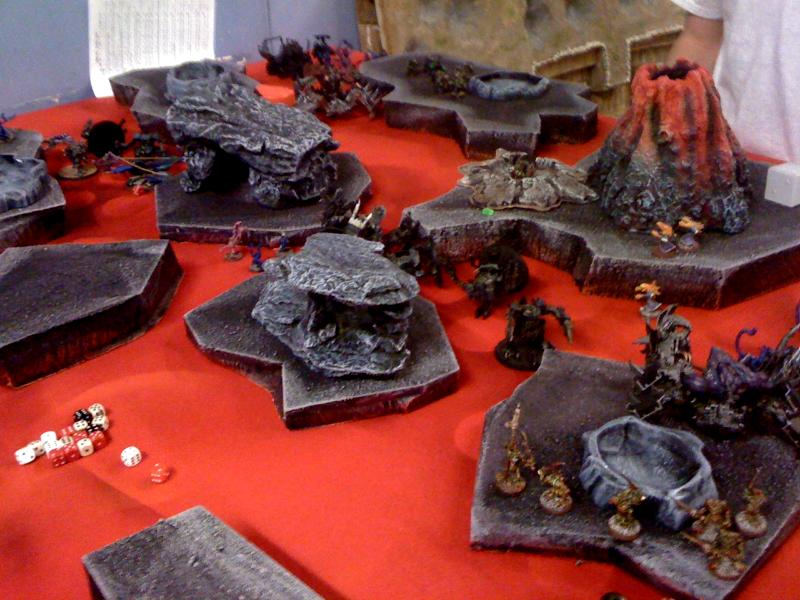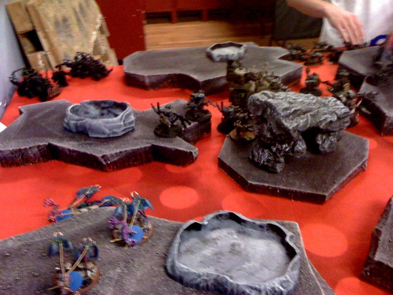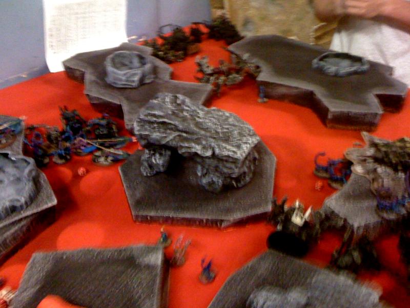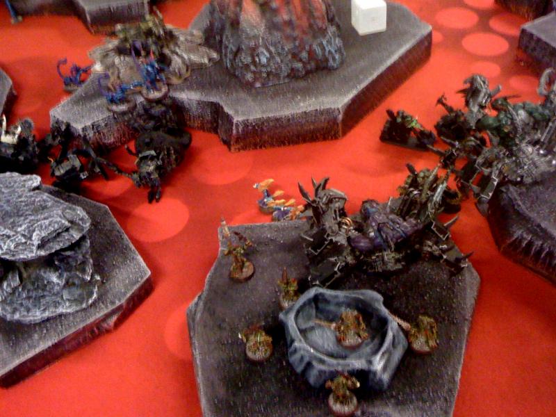 So at the end of the game he has a biker nob and 1 kan from each of two of his kan units. I have 1 fiend, 1 soul grinder, 3 horror's, and the plague bearers above half, and one unit of fiends below half. Not enough for a massacre so I end up with a major and both of the objectives for 24 points (max was 27 points for the round).