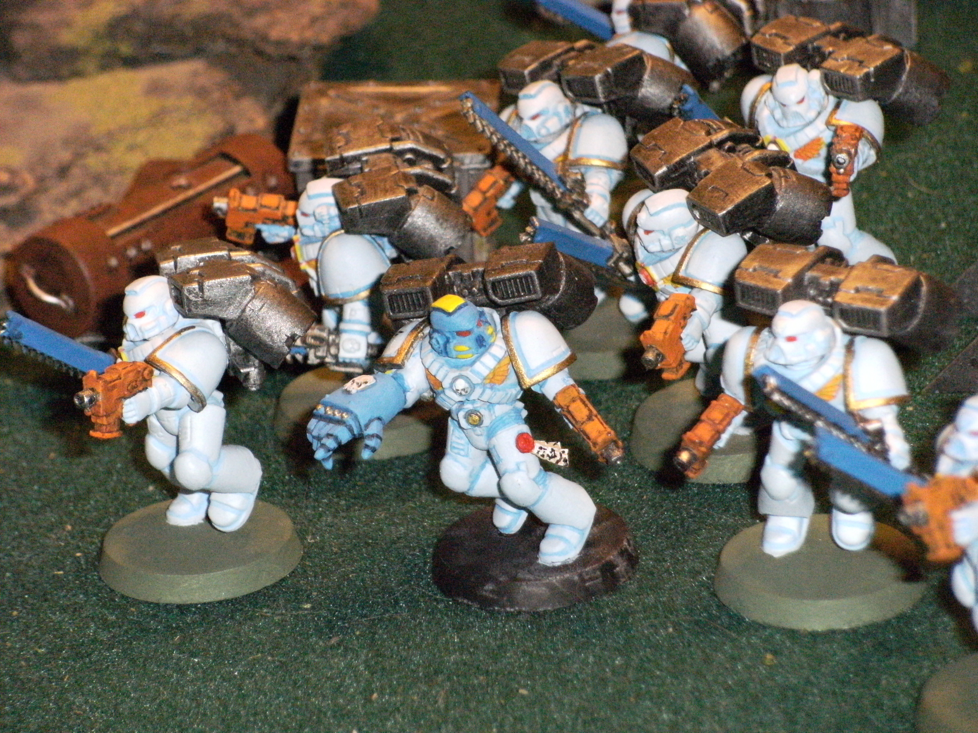I am still messing with my camera as their color either washes out with flase or greens up without one. The contrast of the main color, (Space Wolf Grey), and the blue highlight color don't stand out as much from certain angles.