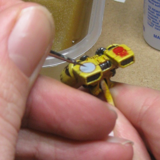 Step 12: Varnish the mini. It's a really good idea to put on a protective gloss coat to seal the decals and protect against them being rubbed off (especially home-printed decals like these). Then matt down. Job done.