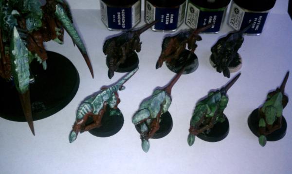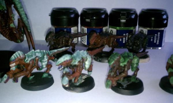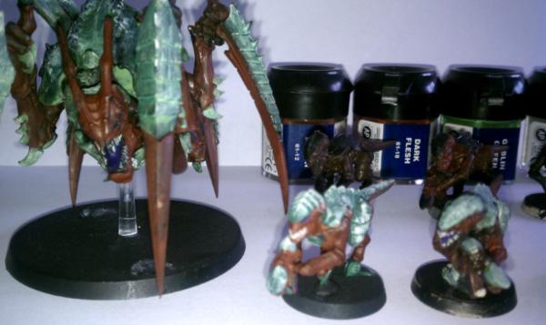 I am trying to paint some Tyranids to a color scheme I got from a trade. I want to match them closely to what they look like and then try and make them better.