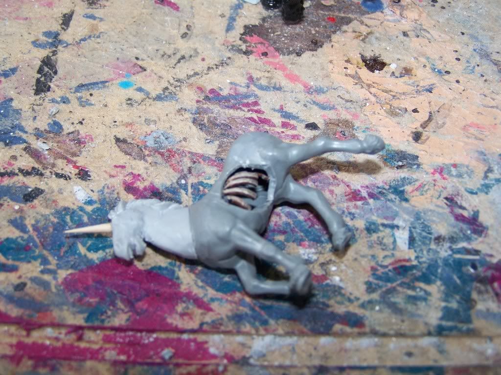 I plan on green stuffing some entrails and using water effects, red paint, and maybe some glitter to make a huge mess of the unicorns guts. I also have the chaos sorceror familar that looks like a raven bursting out of guts while its body is being regenerated or formed from