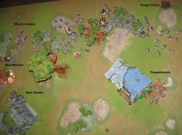 The battle prophets of the Harrowed, coaxing the creatures of the Warp to the field, summoned: The ‘Thirster, the Bloodcrushers, the Soul Grinder, the Plaguebearers and the Nurgle Prince.
