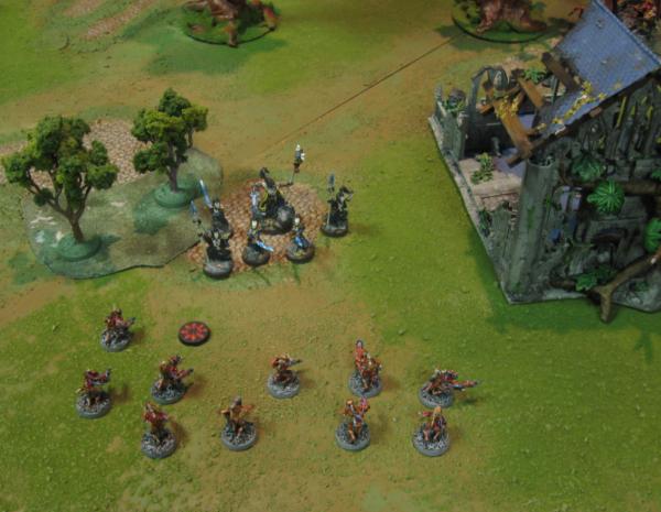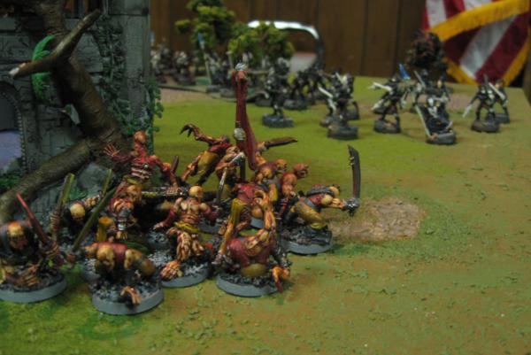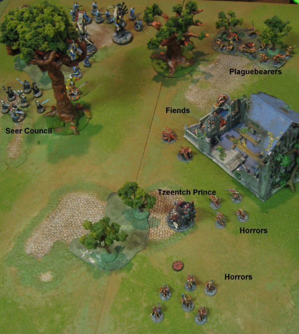 … occupied the Daemon objective, wiping out one of the Horror packs as they did so. The Horrors poured warpfire into the Eldar witches, but not in anything like threatening volume. That objective remained contested.