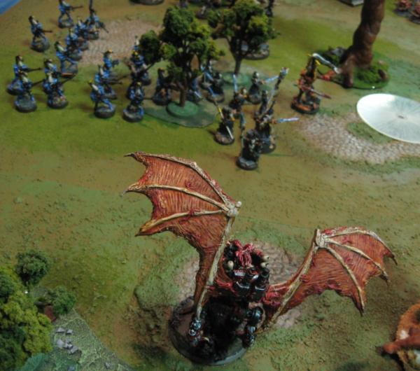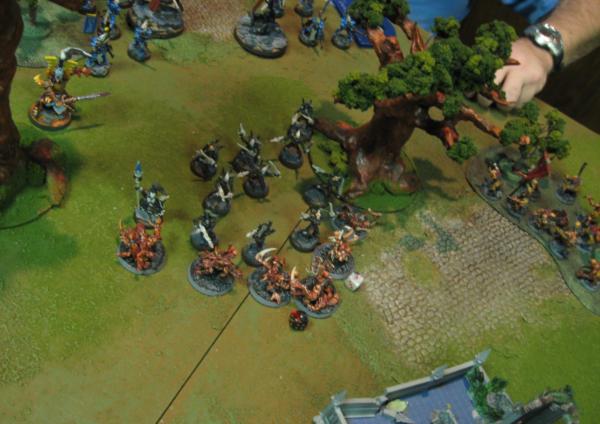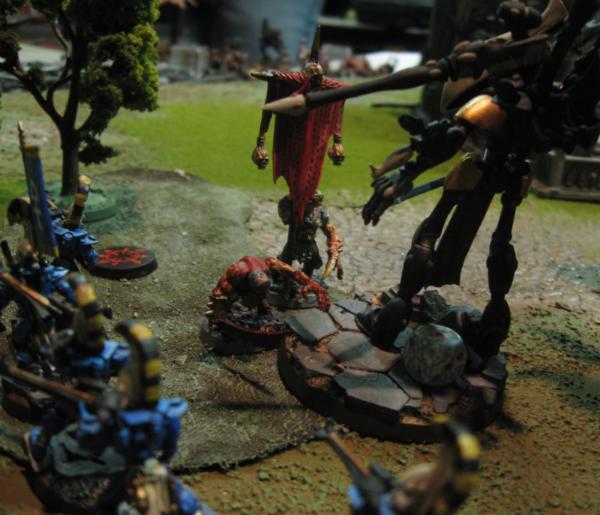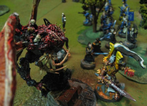 The Seer Council and Eldrad, meanwhile, Doomed the Bloodthirster locked in combat with the Avatar, Fortuned themselves and said Avatar, then plunged into that melee. Under the added onslaught, the Bloodthirster fell, failing to deliver even one wound to the Avatar.