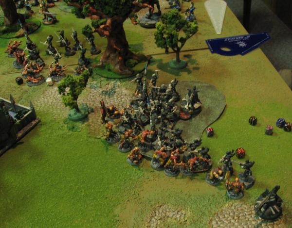 Behind, near the Eldar objective, the Plaguebearers fought on grimly against the Wraithlord, dying, but only slowly, slave by slave.