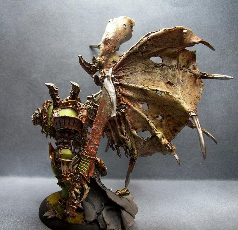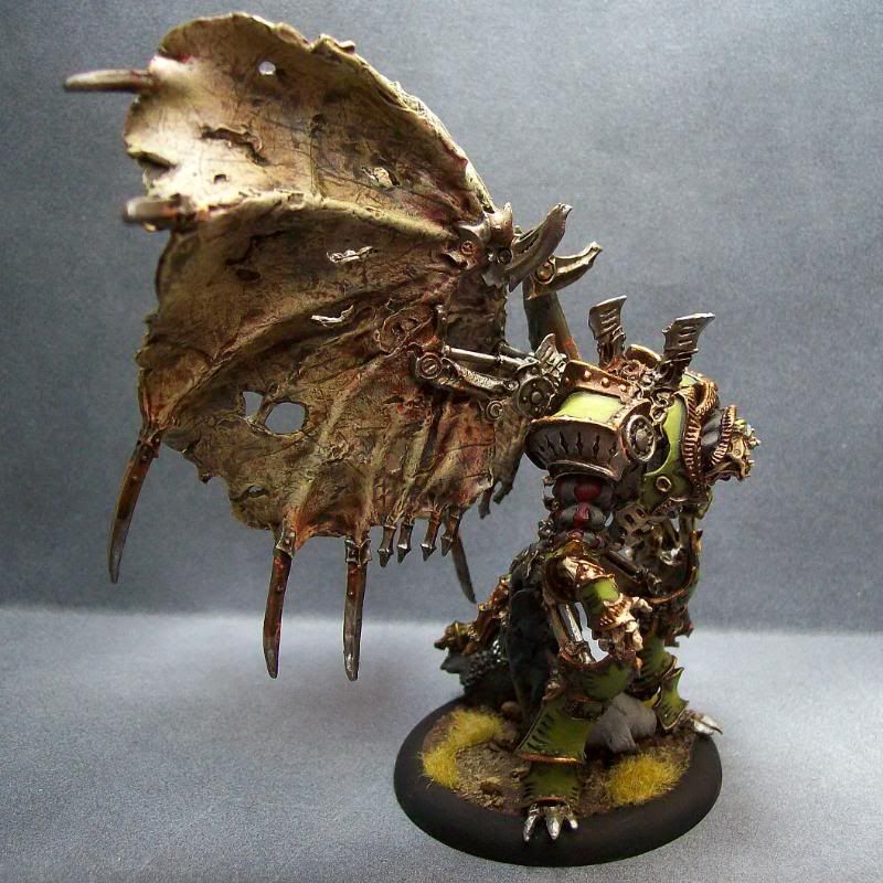 very cool looking model and a job well done. it's nice to see a nurgle model every once in a while that takes on the sick/gaunt/dead look instead of the usual bloated/pussy/oozing.