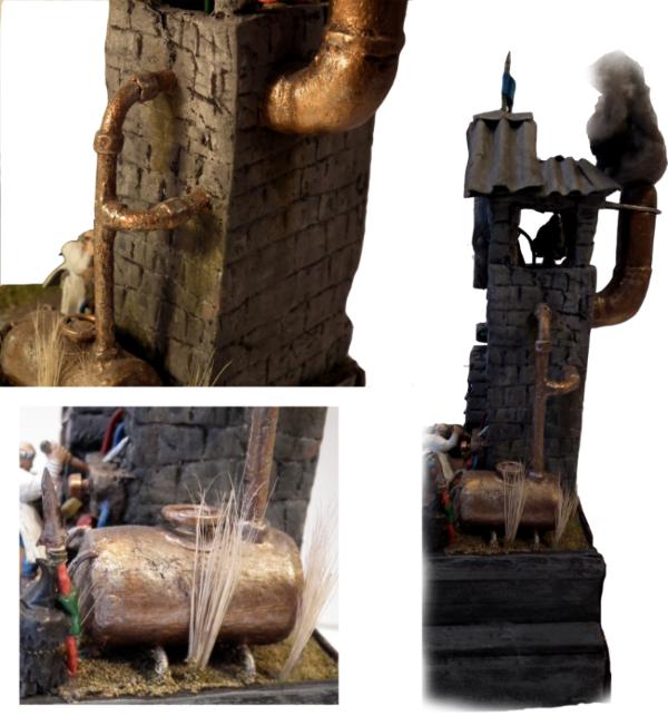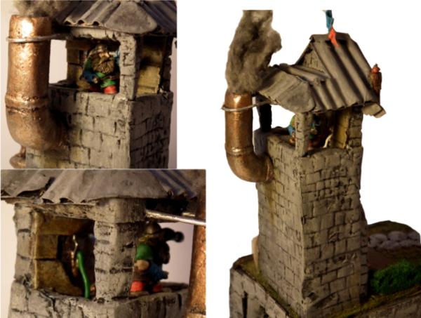 The big pipe has been sculpted from tick foam-board as well as the whole building. And there is also that funky dwarf in there looking for .. something ..
