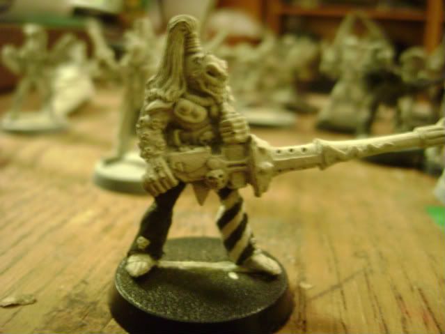 Eldar model is an old Harlequin Death Jester. The current model is better, but some folks (like me) have a soft spot for the old ones. I have a couple dozen of them, I think.
