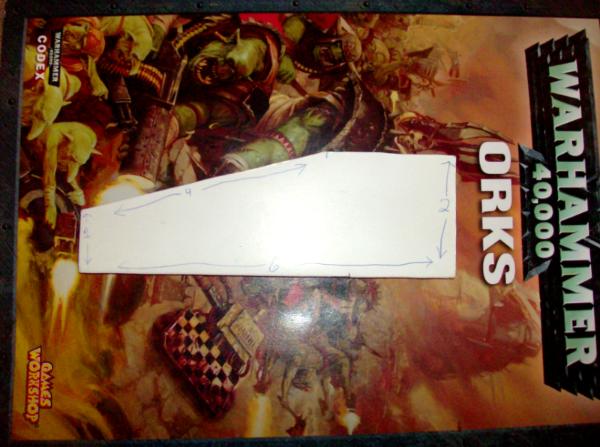 This is mine that i made out of some foam core that was just sitting around my house. It can be made out of anything you like just make sure your measurements are spot on so you don't get accused of cheating. There is really no directions no how to make it, the picture says it all. During my last game I had a buddy tell me that I would not be allowed to use this during tournament play because its not a official tool, but they way I look at it the one made by GF9 is not a