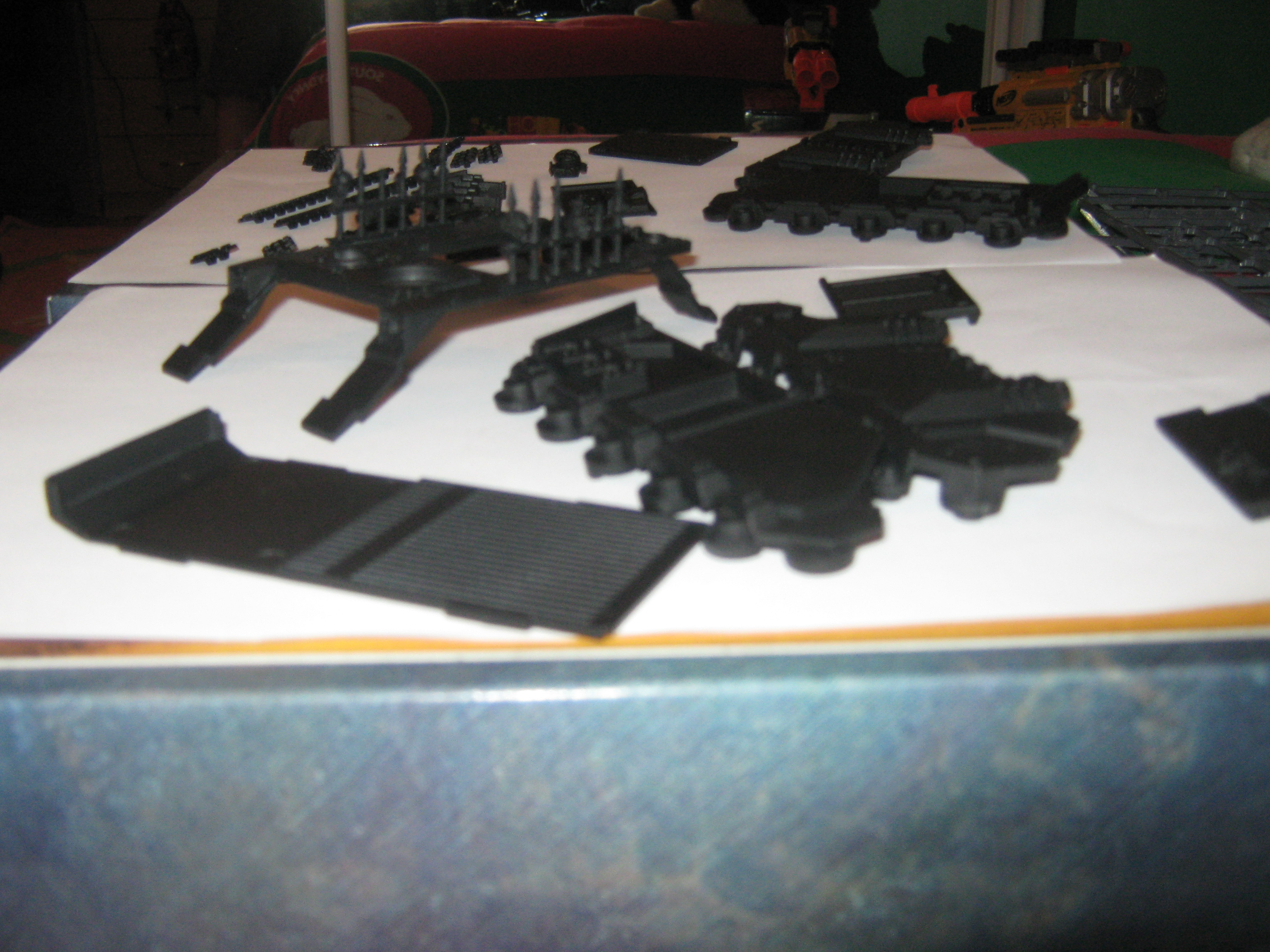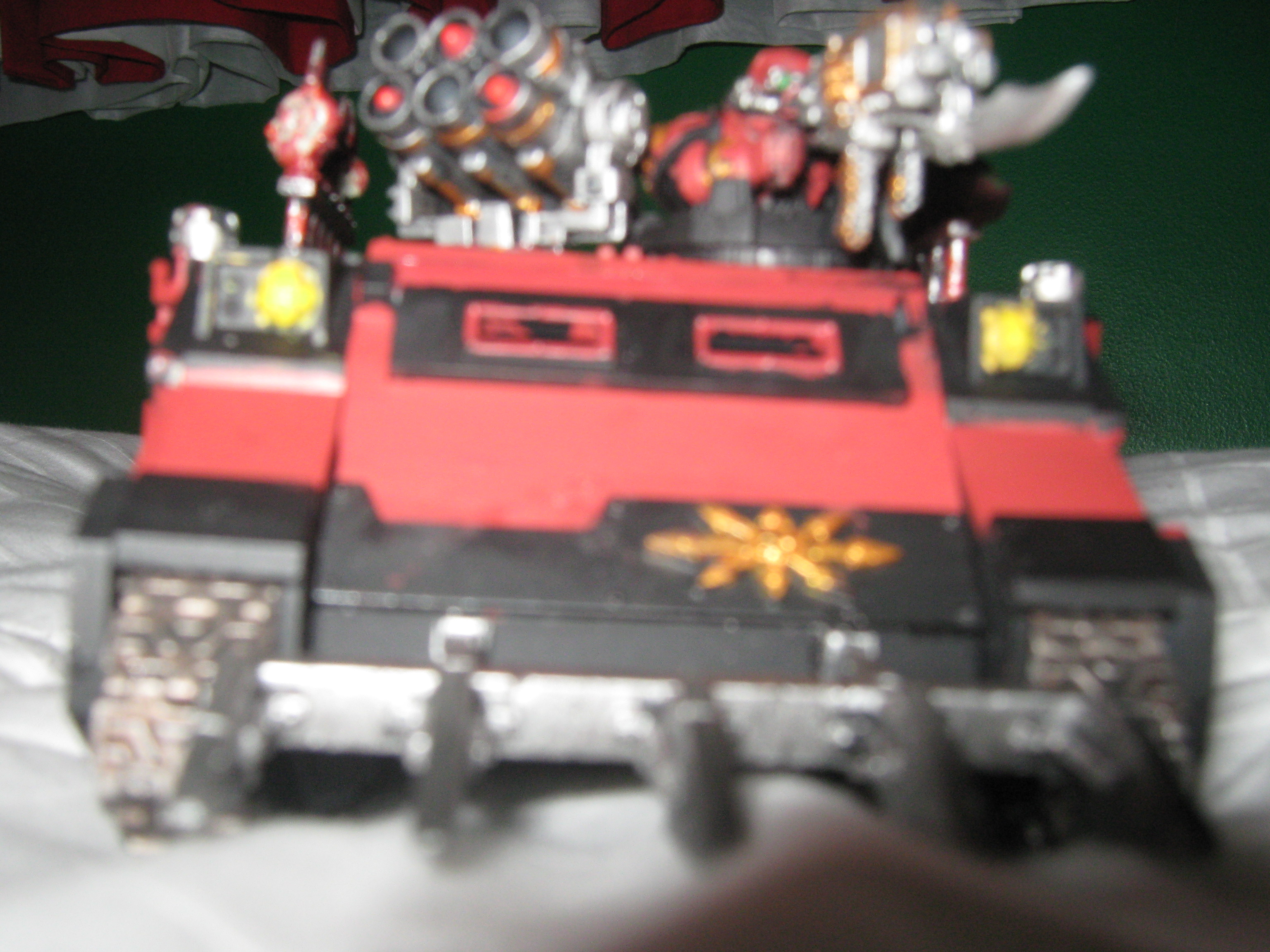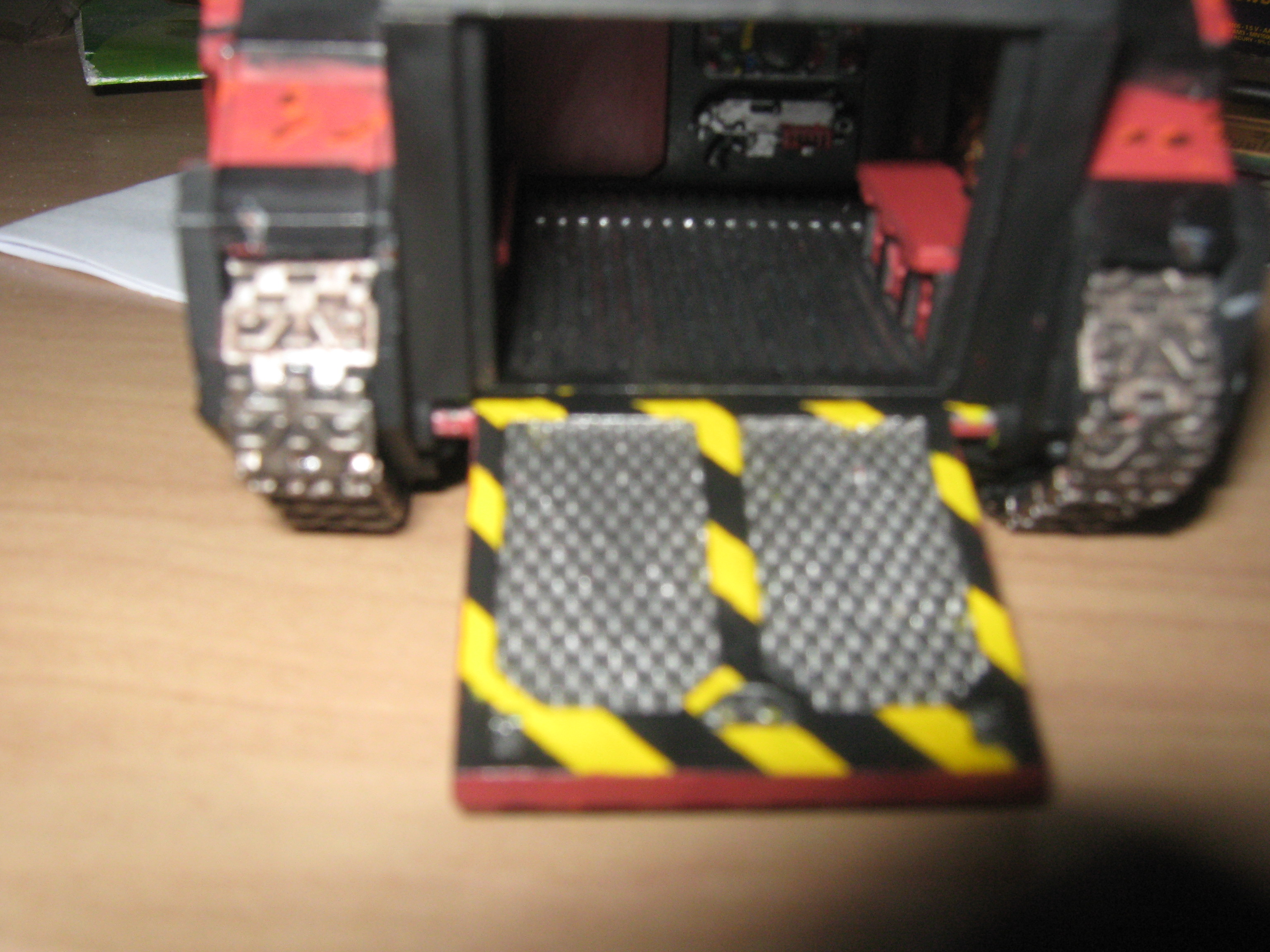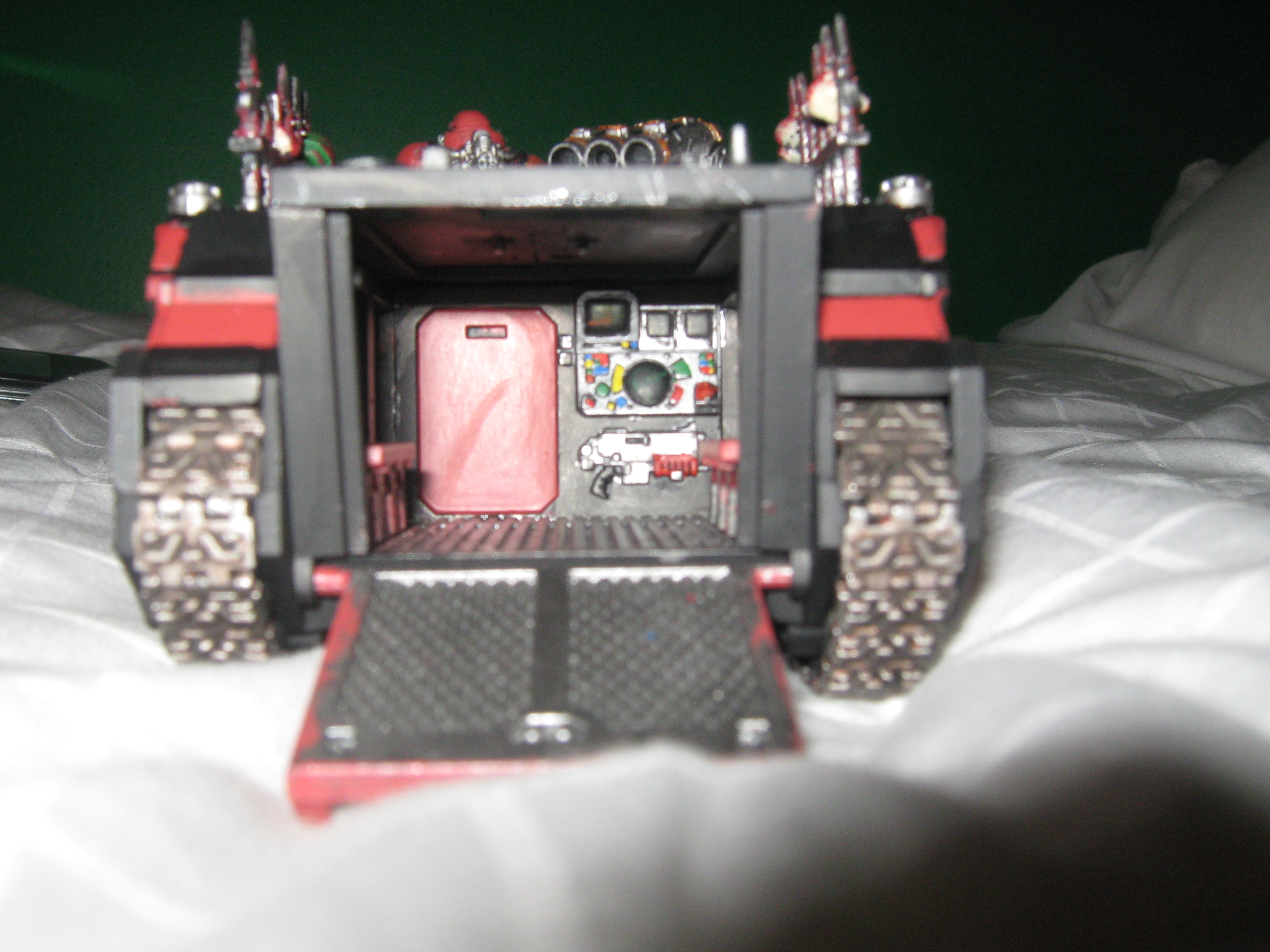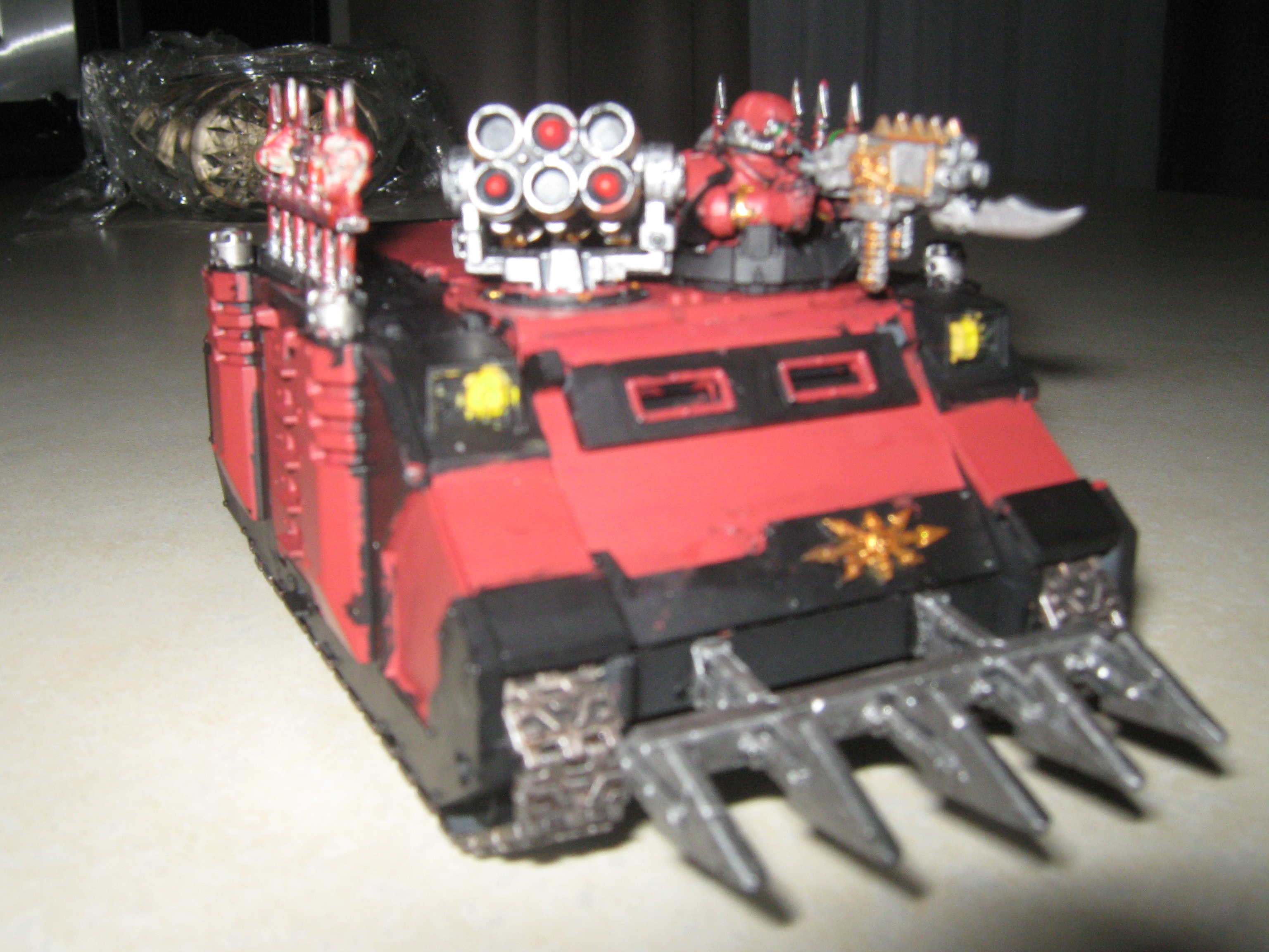 I started painting my rhino today and the paint scheme is red and black for the Red Corsairs as you can see it is painted terribly but that is only the basecoat, I'm doing all the red panels and stuf first then I'll starttouching up and highlighting then all the other details, I'm pretty new to painting so this might take a while.