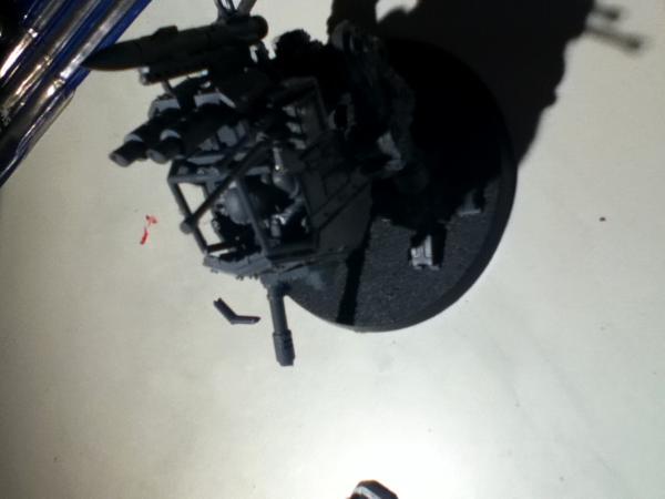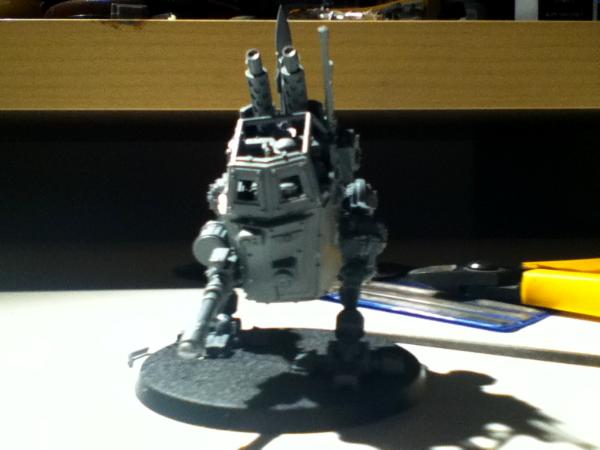 Here is my "Trench Sentinal". I call it a trench sentinel because it is falling ove... BENIDNG over for cover. I mounted the hunter-killer missile on the back, which seemed like a better place to put it with the big gap in the engine block. My