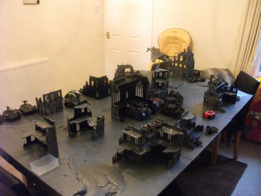 Not much to say really except this game is in the bag now. Vendetta was really the last hope for Shaun as it could have turbo boosted and contested my objective, but with it gone he cannot do that. His objective has 40 Orks coming at him with av14 tanks and he has 10 guys at least I can contest it or hopefully kill them off.