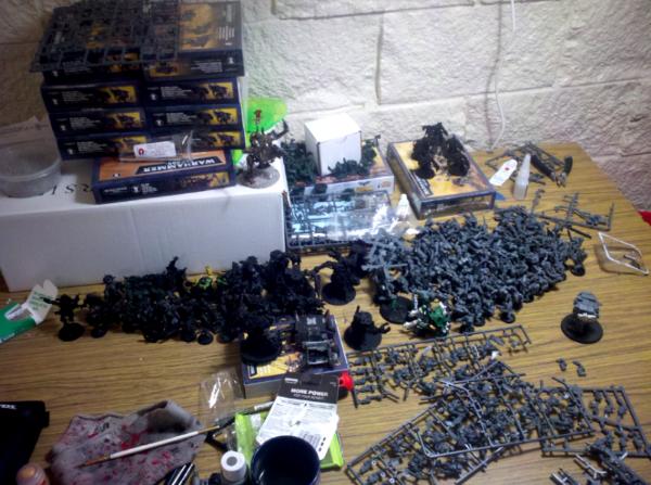 Hey guys! I am new to the website- thanks to all of you who welcomed my introduction thread! Well last semester my roommates really got me into some 40k and although I didn't have a whole lot of time due to work and school, I started buying up boxes for when I would have more time. I did it in a stupid way though and I have a huge army sitting on sprue or in the box. I don't even know if I would want some of the units that I bought. I have been assembling for a couple of days just trying to get it all done as I have nothing else to do until may(Idaho snow sucks!). I've painted d&d minis some but I am new to the whole army painting thing. Any feedback will be received and used! The only thing that I have finished completely is a converted deff dread(I love conversions!). I will be posting here a lot as I work on my army daily.
