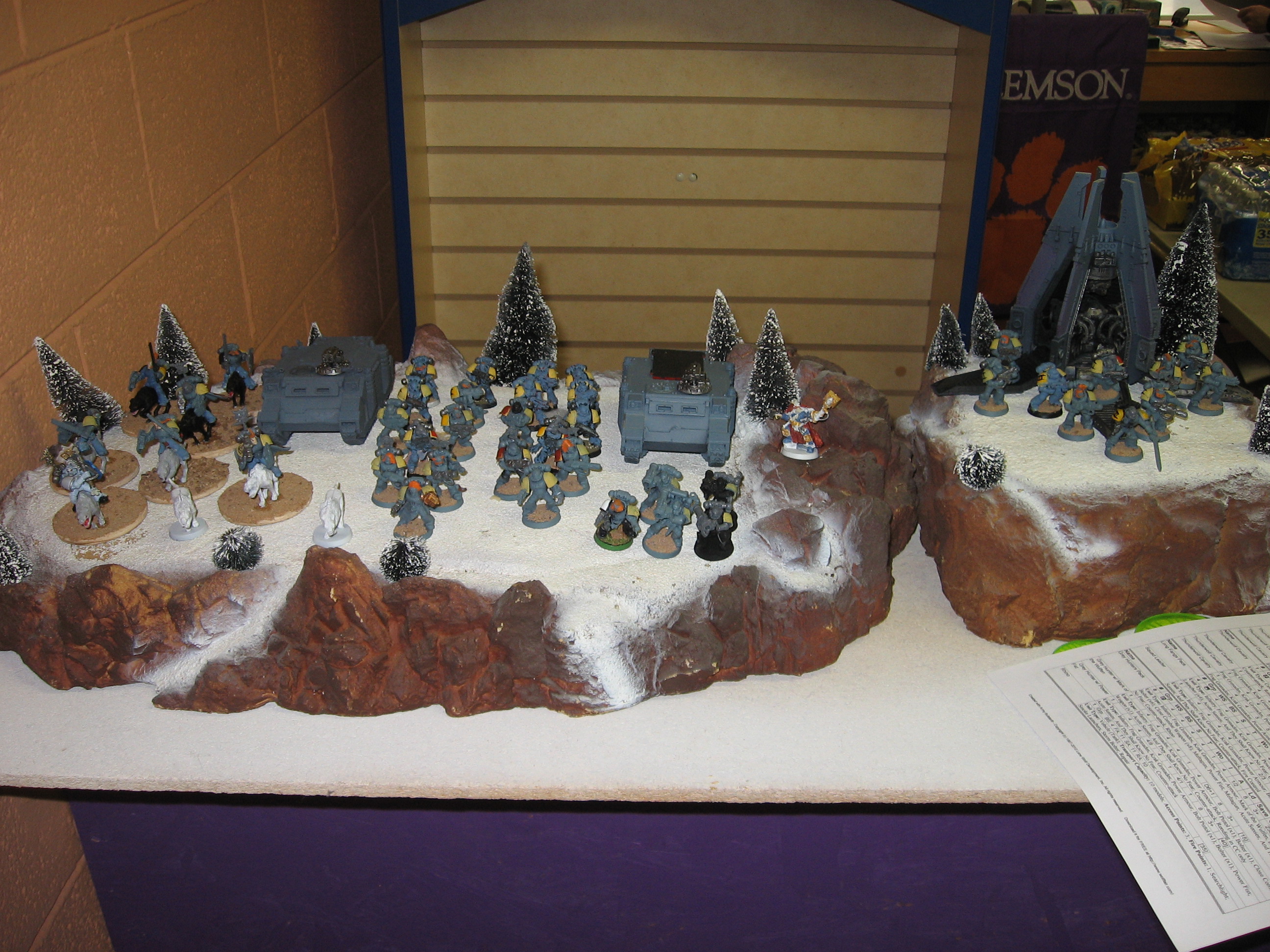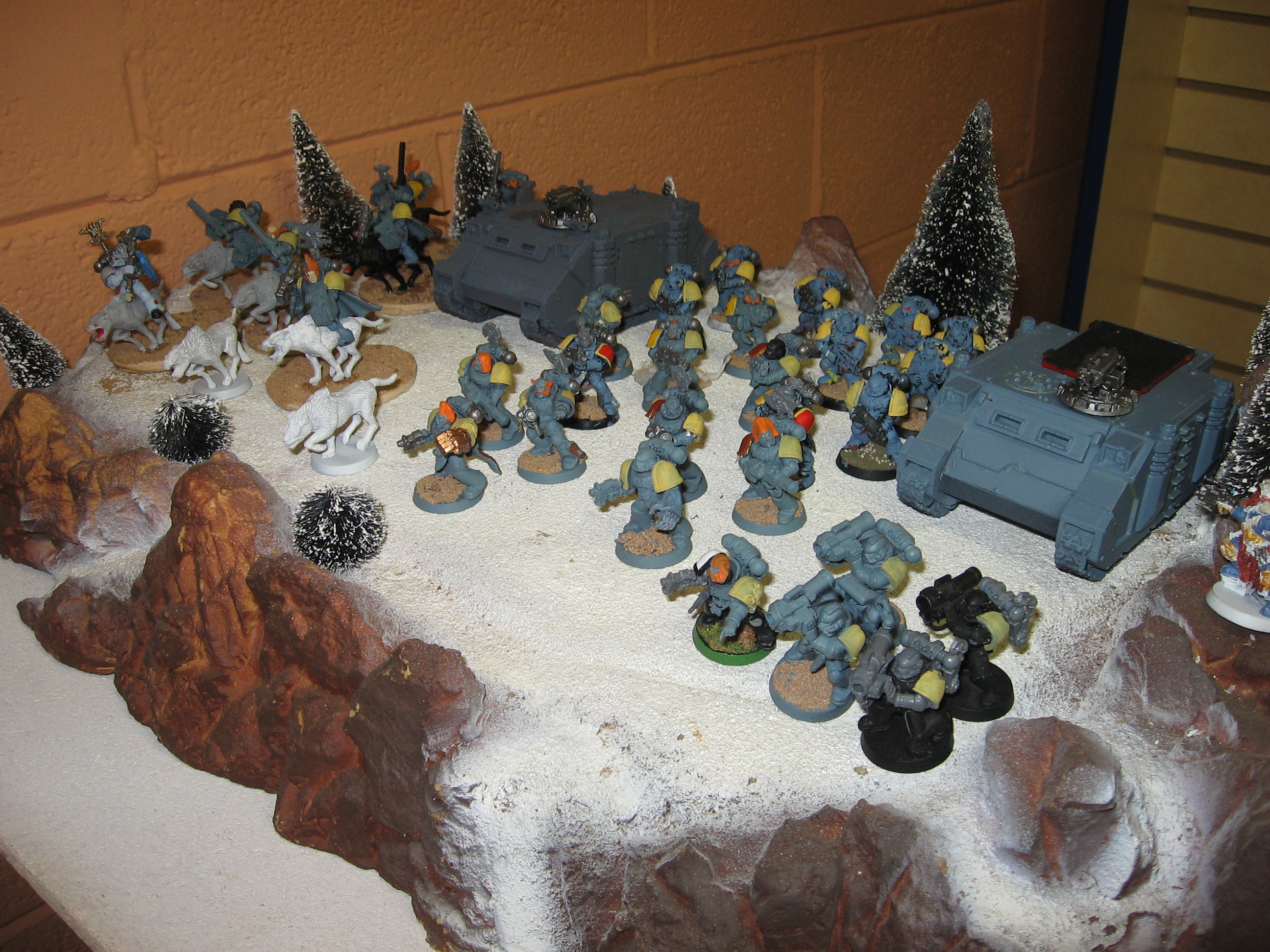 I deploy all of my stuff in a tight bunch on the right side of the table. Keith deploys across from me, thunder wolves in the middle