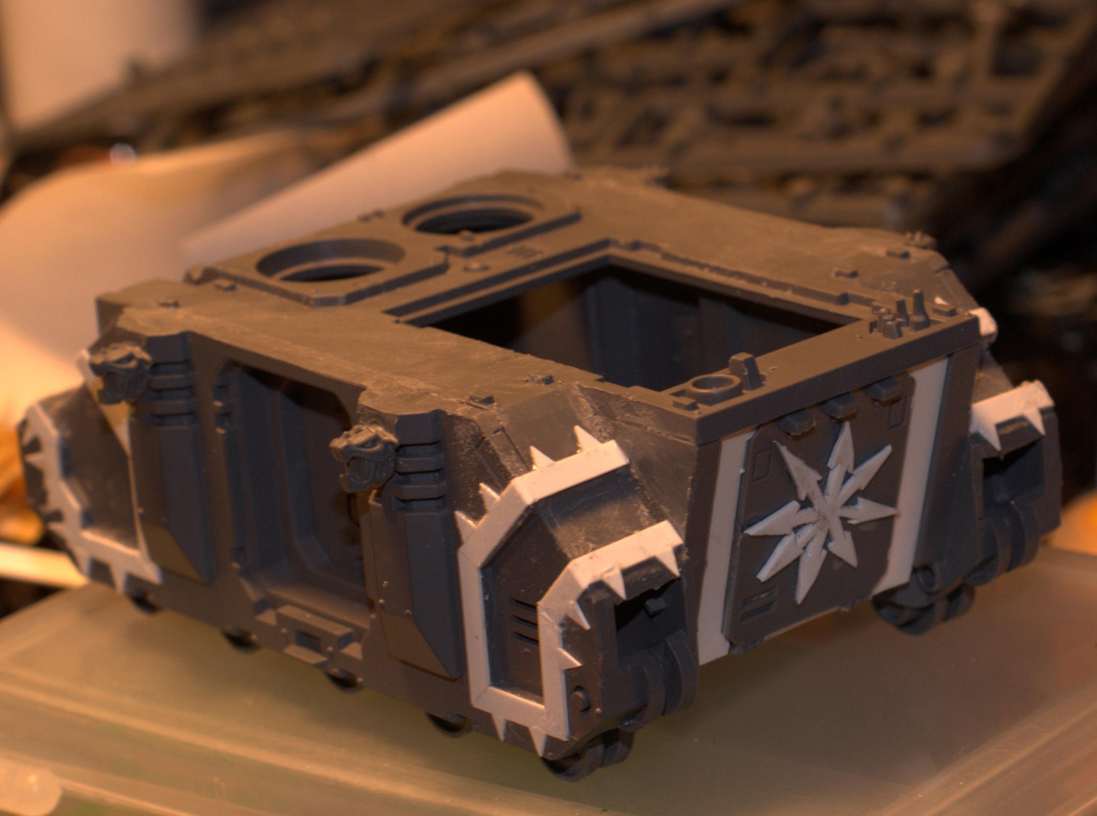 So i am building a WH 40k Chaos Marines army themed on Iron warriors. I found a retailler online that sold stuff for cheap, but only some stuff, and I bought a kit containing two chaos Rhinos.